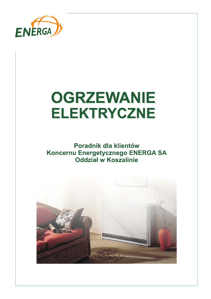 SPIS TREŚCI JAKIE SĄ PODSTAWY FIZYCZNE OGRZEWANIA?.........................................................................3 DLACZEGO PRĄD? ..................................................................................................................5 JAKIE SĄ ZALETY OGRZEWANIA ELEKTRYCZNEGO?...................................................................6 TERMOMODERNIZACJA – WYMÓG KONIECZNY OSZCZEDZANIA ENERGII?....................................6 JAK ZATEM TANIO OGRZAĆ CZTERY KĄTY? ...............................................................................7 Nośnik energii cieplnej ......................................................................................................7 Urządzenie grzewcze........................................................................................................7 JAKIE SĄ ELEKTRYCZNE SYSTEMY GRZEWCZE NA RYNKU POLSKIM?..........................................8 Piece akumulacyjne z dynamicznym rozładowaniem .......................................................8 Elektryczne ogrzewanie konwektorowe ..........................................................................11 Elektryczne ogrzewanie podłogowe................................................................................11 Ogrzewanie sufitowe.......................................................................................................13 Ogrzewanie z wykorzystaniem pomp ciepła ...................................................................14 JAK SAMEMU OKREŚLIĆ ZAPOTRZEBOWANIE NA MOC DO OGRZEWANIA ?.................................15 OBWODY PRIORYTETOWE ? ..................................................................................................15 Formularz do obliczania (przybliżonego) zapotrzebowania na moc do ogrzewania......16 2 Gdy nastają długie zimowe wieczory, wszyscy marzą o ciepłym i przytulnym kącie. Dowiedziono, że człowiek najlepiej czuje się w temperaturze 18-24°C, a według polskich norm, za komfort cieplny uważa się 20°C. Aby ten stan osiągnąć w naszej strefie klimatycznej, konieczne jest zapewnienie odpowiedniego ogrzewania naszych czterech kątów. Dzisiaj, kiedy do dyspozycji mamy całą gamę urządzeń grzewczych, wykorzystujących wszystkie dostępne nośniki energii, nie stanowi to większego problemu. Pojawia się on, kiedy zaczynamy rozważać kwestie efektywności poszczególnych źródeł ciepła, zarówno w odniesieniu do naszej wygody, jak i kieszeni. Do niedawna, w polskich domach przeważały tradycyjne formy ogrzewania, oparte na technologii spalania węgla w centralnych bądź lokalnych kotłowniach albo w domowych piecach węglowych. Wraz i dostrzeżeniem faktu wyczerpywania się źródeł energii, zaczęły nabierać znaczenia, nieistotne dotychczas, aspekty pozyskiwania energii cieplnej, takie jak m.in. konieczność ochrony środowiska czy też oszczędzania energii. W niedługim czasie, kwestie te przełożyły się na drastyczny wzrost cen poszczególnych nośników energii, w rezultacie czego udział kosztów ogrzewania stanowi obecnie od 50% do nawet 80% naszych stałych wydatków eksploatacyjnych. Utrzymujący się od dłuższego czasu taki stan rzeczy, coraz częściej zmusza nas do zastanowienia się nad tym, co zrobić, aby zdecydowanie ograniczyć te koszty. W ciągu ostatnich lat przetestowano wiele nośników ciepła, takich jak olej, gaz i energia elektryczna. Każdy z nich ma swoje wady i zalety, jednak energia elektryczna stanowi jedynie medium w pełni umożliwiające korzystanie z osiągnięć postępu technologicznego. Ponadto, jest ona uznawana za jedną z najczystszych ekologicznie form energii, nie powodującą żadnych zanieczyszczeń w miejscu eksploatacji i w jego otoczeniu. Niniejszy poradnik stanowi próbę bliższego pokazania Państwu tych zagadnień oraz prezentacji możliwości ogrzewania pomieszczeń, jakie daje energia elektryczna. JAKIE SĄ PODSTAWY FIZYCZNE OGRZEWANIA? Większość stosowanych systemów grzewczych przekazuje ciepło do otoczenia, zarówno w drodze konwekcji, jak i promieniowania. Konwekcja to zjawisko przenoszenia ciepłego powietrza, ogrzanego grzejnikiem (a więc lżejszego) w górę pomieszczenia oraz zimnego (a więc cięższego) w dół. W rezultacie, w pomieszczeniu tworzy się cyrkulacja powietrza, a taki sposób ogrzewania charakteryzuje się dużą nierównomiernością temperatur pomiędzy podłogą i sufitem. Temperatura powietrza jest wyższa od temperatury ścian podłogi i sufitu. Z kolei promieniowanie polega na tym, że źródło ciepła emituje promienie cieplne, które padając na wszelkie elementy stałe takie jak np. ściany, podłoga, sufit czy meble, nagrzewają je. W tym sposobie ogrzewania średnia temperatura otaczających przegród budowlanych jest o 2-3°C wyższa od temperatury powietrza w pomieszczeniu. W rezultacie, aby uzyskać komfort cieplny (czyli subiektywne odczuwanie ciepła ) na poziomie 20-22°C temperatura powietrza nie musi przekraczać 17-19°C. Każdy stopień obniżania temperatury daje oszczędności ok. 5% energii, co w tym przypadku przekłada się na redukcję zużycia o ok.15%. Istotny jest również fakt lepszego rozkładu temperatur niż w przypadku konwekcji. 3 Ważnym elementem systemu grzewczego w każdym domu czy mieszkaniu są okna – z jednej strony istotny element systemu wentylacji, ale z drugiej – źródło strat ciepła. Wentylacja jest dodatkowo istotna z racji spełnianej przez nią funkcji eliminacji wilgoci. Przy każdym zamkniętym oknie występuje zjawisko tzw. „opadania zimna”, które nasila się wraz ze spadkiem temperatury na zewnątrz a polega na zbieraniu się mas zimnego powietrza pod oknem. Z tego względu, szczególnie istotne jest właściwe usytuowanie grzejnika w pomieszczeniu. Nie należy montować go na ścianie wewnętrznej, gdyż opisane wyżej niekorzystne zjawisko ulegnie wzmocnieniu. Instalacja grzejnika pod oknem (najlepiej o szerokości odp
