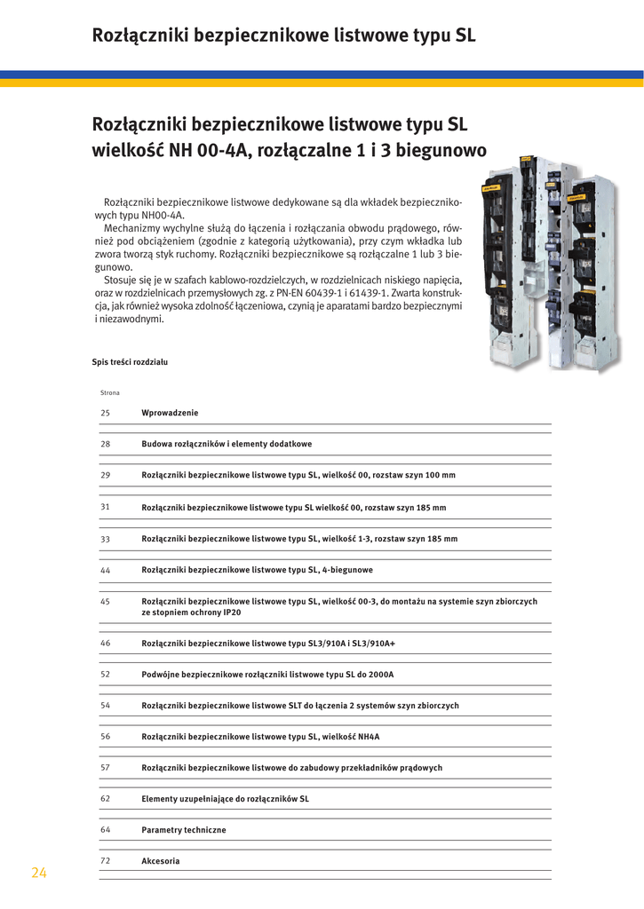 Rozłączniki bezpiecznikowe listwowe typu SL