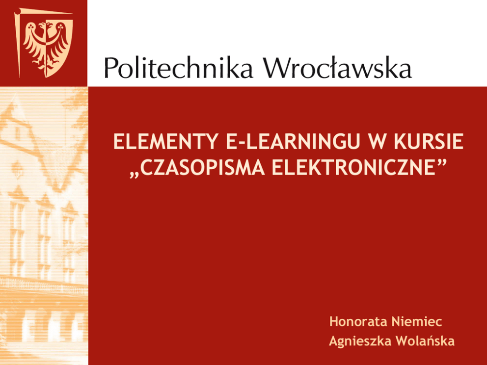 Agnieszka K. Wolańska, Politechnika Wrocławska: Elementy e