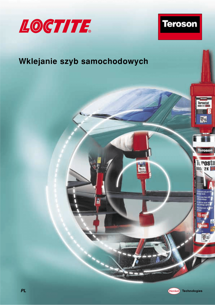 Wklejanie szyb samochodowych PL Spis Materia¬y Terostat - 8600 2K HMLC ..................................................................................................................................................... Terostat - 8600 2K HMLC zestaw ................................................................................................................................... Terostat - 8599 HMLC ............................................................................................................................................................. Terostat - 8599 HMLC zestaw ............................................................................................................................................ Terostat - 8597 HMLC ............................................................................................................................................................. Terostat - 8597 HMLC zestaw ........................................................................................................................................... Terostat - 8596 ............................................................................................................................................................................. Terostat - 8596 zestaw ........................................................................................................................................................... Terostat - 8517 H podk¬ad .................................................................................................................................................... Terostat - 8525 aktywator ..................................................................................................................................................... Zmywacz + Rozcieñczalnik FL .......................................................................................................................................... Intensywny zmywacz do szyb ............................................................................................................................................ Terodicht - Czarny ..................................................................................................................................................................... Terodicht - Elastik ..................................................................................................................................................................... Circuit + - Preparat do naprawy ‚cie¿ek ogrzewania tylnej szyby ............................................................. Contact + - Pasta lutownicza wype¬niona srebrem ............................................................................................ 150319 Zestaw do przyklejania lusterka wstecznego ........................................................................................ 319 Glas-Metall Klebeset zestaw .................................................................................................................................... Narz™dzia R™czny wyciskacz - Staku ................................................................................................................................................... Professional System ................................................................................................................................................................ Teleskopowy, pneumatyczny wyciskacz - Power Line ....................................................................................... Teleskopowy, pneumatyczny wyciskacz - Multi Press ....................................................................................... Podgrzewacz kleju .................................................................................................................................................................... Drut do wycinania szyb (czworokåtny) ......................................................................................................................... Aplikatory (we¬niane waciki) ................................................................................................................................................ Struna do wycinania szyb (z¬ota) ..................................................................................................................................... Ig¬a do struny .............................................................................................................................................................................. Uchwyt do szyby z dwoma przyssawkami ................................................................................................................ Standardowy przyrzåd do przytrzymywania drutu ................................................................................................ Skrzynka na narz™dzia ........................................................................................................................................................... Standardowe uchwyty do struny i drutu ...................................................................................................................... Ostrze wymienne do no¿a r™cznego, 19 mm .......................................................................................................... Ostrze wymienne do no¿a r™cznego, 25 mm .......................................................................................................... Ostrze wymienne do no¿a r™cznego, 38 mm .......................................................................................................... Metalowy pojemnik na strun™ lub drut .......................................................................................................................... OLFA XL 2 - d¬ugi, specjalny nó¿ ......................................................................................................................