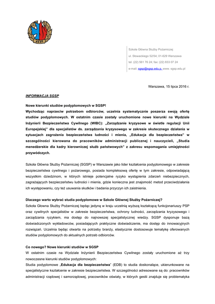 2016-07-15-Nowe kierunki studiów podyplomowych w SGSP