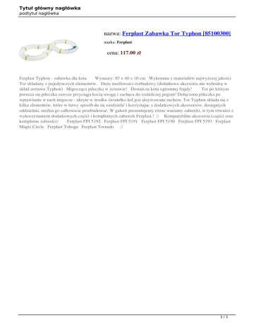 Tytuł główny nagłówka podtytuł nagłówka nazwa: Ferplast Zabawka Tor Typhon [85100300] marka: Ferplast cena: 117.00 zł Ferplast Typhon - zabawka dla kota Wymiary: 85 x 40 x 10 cm Wykonana z materiałów najwyższej jakości Tor składany z pojedynczych elementów. Duże możliwości rozbudowy (dodatkowe akcesoria nie wchodzą w skład zestawu Typhon) Migocząca piłeczka w zestawie! Dostarcza kotu ogromnej frajdy! Tor po którym porusza się piłeczka zawsze przyciąga kocią uwagę i zachęca do szaleńczej pogoni! Dołączona piłeczka po wprawieniu w ruch migocze - ukryte w środku światełko led jest aktywowane ruchem. Tor Typhon składa się z kilku elementów, które w łatwy sposób da się rozdzielić i korzystając z dodatkowych akcesoriów, dostępnych oddzielnie, można go całkowicie przebudować. W galerii prezentujemy różne warianty zabawki, w tym również z wykorzystaniem dodatkowych części i kompletnych zabawek Ferplast.! Kompatybilne akcesoria (części oraz kompletne zabawki): Ferplast FPI 5192 Ferplast FPI 5191 Ferplast FPI 5190 Ferplast FPI 5193 Ferplast Magic Circle Ferplast Toboga Ferplast Tornado 1/1