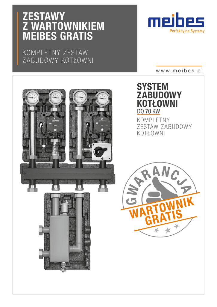zestawy z wartownikiem meibes gratis Komple t n y zestaw z a budow y kot łow ni w w w. m e i b e s .p l System zabudowy kotłowni do 70 kW Ko mple t n y zestaw z a budow y kot łow ni System zabudowy kotłowni do 70 kW Kompletny zestaw zabudowy kotłowni Zestaw 1 – MK/MK (dla 2 obwodów z mieszaczem) Kompletny zestaw zabudowy kotłowni do 70 kW dla 2 obwodów z mieszaczem. Zestaw składa się z: • • • • 2 grup pompowych MK DN 25 z mieszaczem z pompą Grundfos Alpha 2 L 25-60, 2 siłowników do grup pompowych MK, rozdzielacza dla 3 obwodów grzewczych, konsoli montażowej do rozdzielacza. Do każdego zestawu wartownik typu K GRATIS. Wykonanie Zestaw 1 – MK/MK nowość Nr kat. Cena Euro netto 520009.3 1277,8 Zestaw 2 – UK/MK (dla 1 obwodu z mieszaczem, dla 1 obwodu bez mieszacza) Kompletny zestaw zabudowy kotłowni do 70 kW dla 1 obwodu z mieszaczem, dla 1 obwodu bez mieszacza. Zestaw składa się z: • • • • • grupy pompowej UK DN 25 bez mieszacza, z pompą Grundfos Alpha 2L 25-60, grupy pompowej MK DN 25 z mieszaczem, z pompą Grundfos Alpha 2 L 25-60, siłownika do grupy pompowej MK, rozdzielacza dla 3 obwodów grzewczych, konsoli montażowej do rozdzielacza. Do każdego zestawu wartownik typu K GRATIS. Wykonanie Zestaw 2 – UK/MK nowość Nr kat. Cena Euro netto 520009.4 1076,7 Zestaw 3 – UK/UK (dla 2 obwodów bez mieszacza) Kompletny zestaw zabudowy kotłowni do 70 kW dla 2 obwodów bez mieszacza. Zestaw składa się z: • 2 grup pompowych UK DN 25 bez mieszacza, z pompą Grundfos Alpha 2L 25-60, • rozdzielacza dla 3 obwodów grzewczych, • konsoli montażowej do rozdzielacza. Do każdego zestawu wartownik typu K GRATIS. Wykonanie Zestaw 3 – UK/UK nowość Nr kat. Cena Euro netto 520009.5 875,6