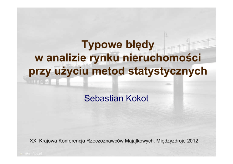 Typowe błędy w analizie rynku nieruchomości przy uŜyciu metod statystycznych Sebastian Kokot XXI Krajowa Konferencja Rzeczoznawców Majątkowych, Międzyzdroje 2012 Rzetelnie wykonana analiza rynku nieruchomości powinna być elementem, czy teŜ etapem kaŜdej wyceny nieruchomości, w szczególności takiej, w której oszacowaniu podlega wartość rynkowa nieruchomości. Trudności przeprowadzenia analizy rynku w sposób prawidłowy pojawiają się juŜ na etapie pozyskiwania i gromadzenia danych. Wynikają one z następujących względów metodologicznych, technicznych i prawnych: • • • • • trudność dostępu do danych, ograniczona wiarygodność danych, brak jednolitych, precyzyjnych definicji, niejednorodność danych, opisywanie nieruchomości przez róŜne rodzaje cech statystycznych, • subiektywne postrzeganie cech nieruchomości przez uczestników rynku, a nawet działających na nim profesjonalistów, • brak moŜliwości uchwycenia specyficznych okoliczności transakcji, • asymetria informacji na rynku nieruchomości, • obserwacje w czasie są dokonywane na róŜnych obiektach, • mała ilość transakcji w krótkich okresach czasu, • wysokie nakłady związane z pozyskaniem danych. Celem referatu jest zwrócenie uwagi na pewne aspekty związane z analizą danych zebranych w toku badania rynku, a więc przy załoŜeniu, Ŝe ww. trudności zostały pokonane i dysponujemy kompletem reprezentatywnych, jednorodnych i wiarygodnych danych liczbowych z poddawanego analizie rynku lokalnego. Okazuje się bowiem, Ŝe nawet na tym etapie moŜna popełnić błędy, które w konsekwencji doprowadzą do nieprawidłowych wniosków. Metody statystyczne znajdują zastosowanie tam, gdzie mamy do czynienia ze zjawiskami masowymi. Zjawisko masowe to takie zjawisko, które często występuje. Częstość występowania moŜe być tu utoŜsamiana zarówno z wystarczająco duŜą liczbą obserwowanych jednostek (obiektów) jak i duŜą liczbą regularnie następujących po sobie obserwacji tego samego obiektu. JeŜeli na podstawie obserwacji takiego zjawiska moŜemy wyciągnąć określony wniosek cechujący je – mamy do czynienia z tzw. prawidłowością statystyczną. Inaczej mówiąc - prawidłowość statystyczna to jednoznaczny wniosek wynikający z obserwacji procesów masowych, czyli kształtowanych przez określony zespół warunków, obserwowanych w duŜej liczbie, masie przypadków. O występowaniu prawidłowości statystycznej w sferze ekonomii (a więc teŜ na rynku nieruchomości) mówimy zatem wówczas gdy w duŜej masie przypadków powtarzają się efekty działań ludzkich. Tak teŜ dzieje się na rynku nieruchomości. Identyfikacji, analizom i diagnozom prawidłowości statystycznych słuŜy cały zestaw zarówno prostych jak bardziej zaawansowanych metod. Powodzenie stosowania metod statystycznych jest jednak uwarunkowane spełnieniem określonych warunków. Bez ich spełnienia – nawet najdoskonalsze metody nie doprowadzą do satysfakcjonujących wniosków, ba mogą wręcz doprowadzić do wniosków błędnych. Główne warunki stosowania metod statystycznych to: • badana prawidłowość jest stała, • badane zjawiska są mierzalne, • spośród czynników wpływających na kształtowanie się badanego zjawiska moŜna wyodrębnić podzbiór czynników istotnych, • istnieją odpowiednie dane statystyczne o badanych zjawiskach. Do podstawowych błędów spotykanych w analizach rynku nieruchomości dokonywanych przy uŜyciu metod statystycznych zaliczyć naleŜy: I. Stosowanie metod statystycznych w sytuacji, gdy de facto w analizowanym zjawisku brak jest podstaw do identyfikacji prawidłowości statystycznych. II. Analiza dotyczy prawidłowości podlegającej istotnej zmianie lub zmianom. III. Miary statystyczne wykorzystywane w ramach analizy zostały źle dobrane. I. Brak jest podstaw do identyfikacji prawidłowości statystycznych Za pomocą metod statystycznych moŜna zarówno zidentyfikować istnienie prawidłowości statystycznej jak i je bliŜej rozpoznać. Jednak stosowanie metod statystycznych tam, gdzie w rzeczywistości, z róŜnych powodów nie występują prawidłowości statystyczne jest nieprawidłowe, a uzyskane wyniki są obarczone błędami dyskwalifikującymi. I. Brak jest podstaw do identyfikacji prawidłowości statystycznych Warunkiem koniecznym ujawnienia się prawidłowości jest to, by badane zjawisko nosiło znamiona zjawiska masowego. Jeśli analizowane w ramach badanego zjawiska zdarzenia na lokalnym rynku nie wystąpiły w dostatecznej liczbie, nie naleŜy wnioskować o zjawiskach rynku nieruchomości na podstawie metod statystycznych, gdyŜ prawdopodobieństwo zbieŜności obliczonych miar z prawdziwymi charakterystykami takiego rynku jest zbyt małe. I. Brak jest podstaw do identyfikacji prawidłowości statystycznych Innym przypadkiem będzie sytuacja, w której mimo, Ŝe dysponujemy dostatecznie licznym zbiorem obserwacji, prawidłowość statystyczna po prostu nie występuje. Jako potencjalne tego przyczyny naleŜy wskazać zafałszowanie danych, niedoskonałości rynku nieruchomości i w konsekwencji podejmowanie decyzji przez uczestników rynku w warunkach braku rzetelnej informacji, zróŜnicowane postrzeganie walorów nieruchomości przez kupujących. I. Brak jest podstaw do identyfikacji prawidłowości statystycznych W efekcie spotykamy sytuacje, w których teoretycznie podobne nieruchomości uzyskują bardzo zróŜnicowane ceny lub stawki czynszu. Trudno wówczas wnioskować o typowym poziomie cen, ruchach cenowych itp. II. Prawidłowość podlega istotnej zmianie lub zmianom Jednym z warunków stosowania metod statystycznych jest to, by badana prawidłowość była stała. Na rynku nieruchomości zachodzą zmiany w zakresie prawidłowości dotyczących róŜnych zjawisk. Np. moda na określoną lokalizację moŜe trwać dziesięciolecia, natomiast notowane w obrocie ceny mogą w tym czasie ulegać intensywnym w