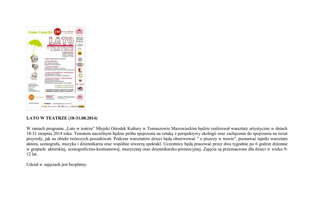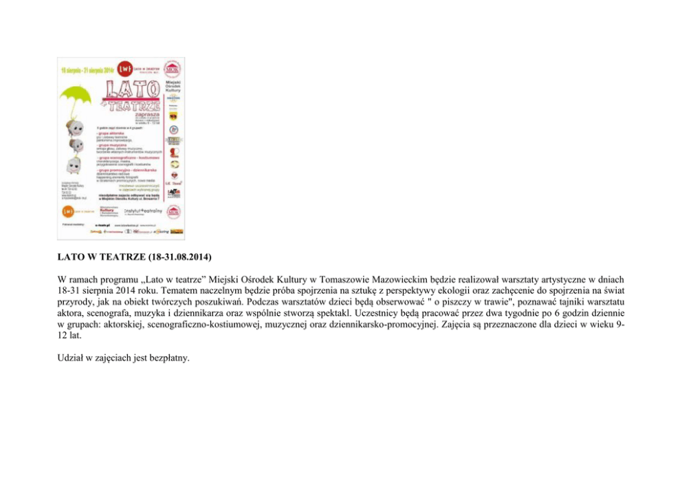 LATO W TEATRZE (18-31.08.2014) - Miejski Ośrodek Kultury w