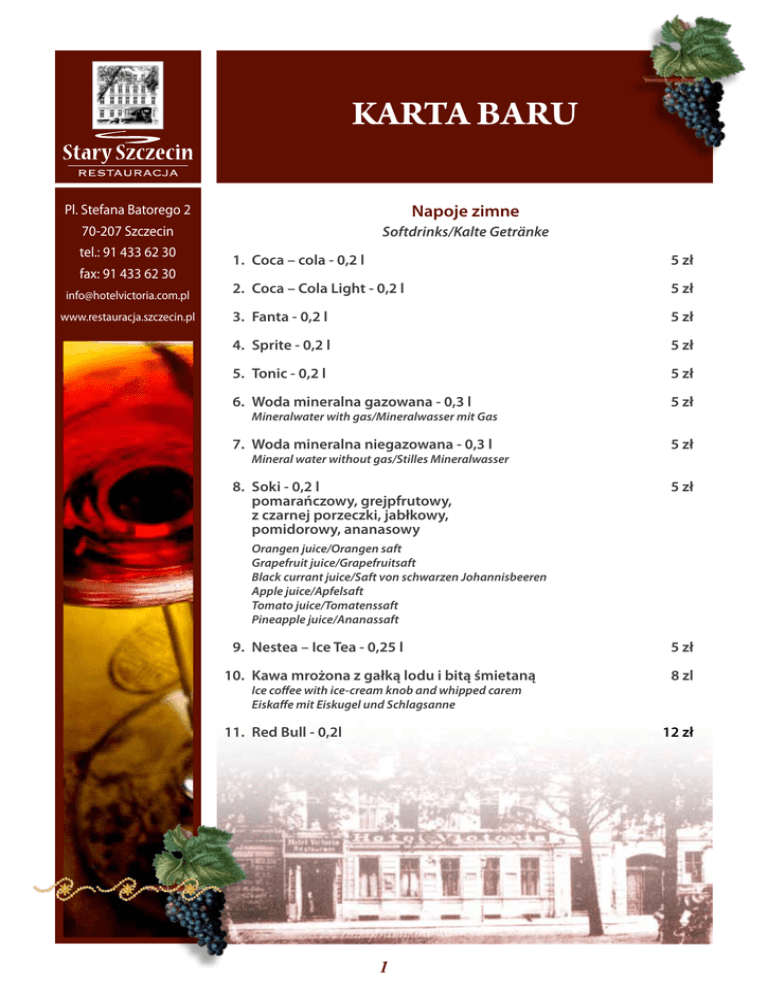 karta baru - Restauracja STARY SZCZECIN