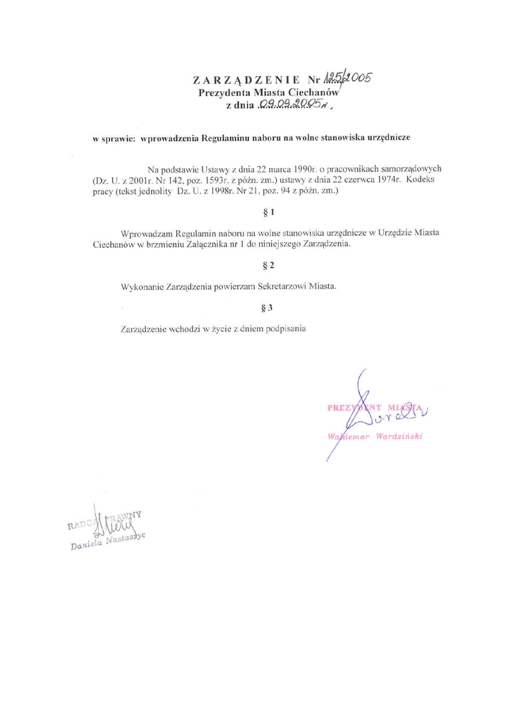 Zarządzenie Nr 125/2005 - Urząd Miasta Ciechanów