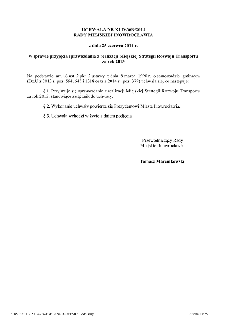 UCHWAŁA NR XLIV/609/2014 RADY MIEJSKIEJ INOWROCŁAWIA
