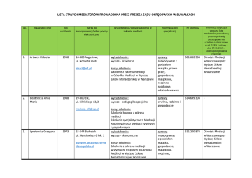 lista stałych mediatorów prowadzona przez prezesa sądu