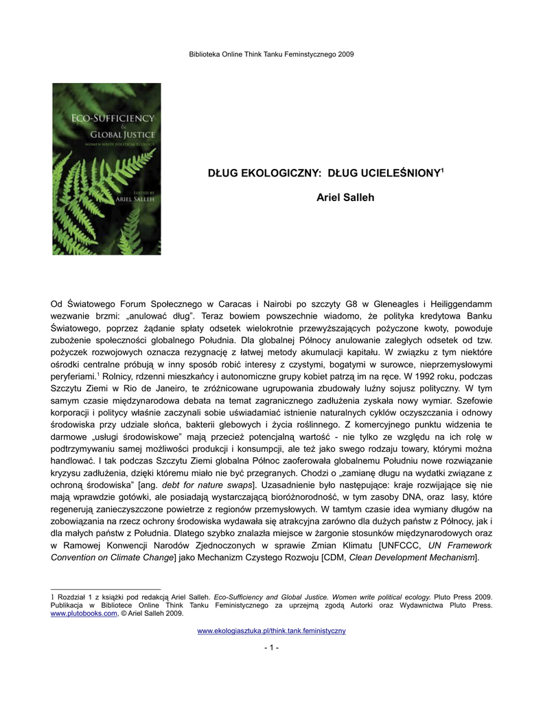 DŁUG EKOLOGICZNY: DŁUG UCIELEŚNIONY1