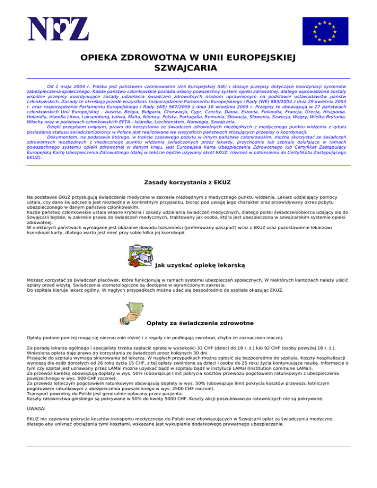 opieka zdrowotna w unii europejskiej szwajcaria - EKUZ