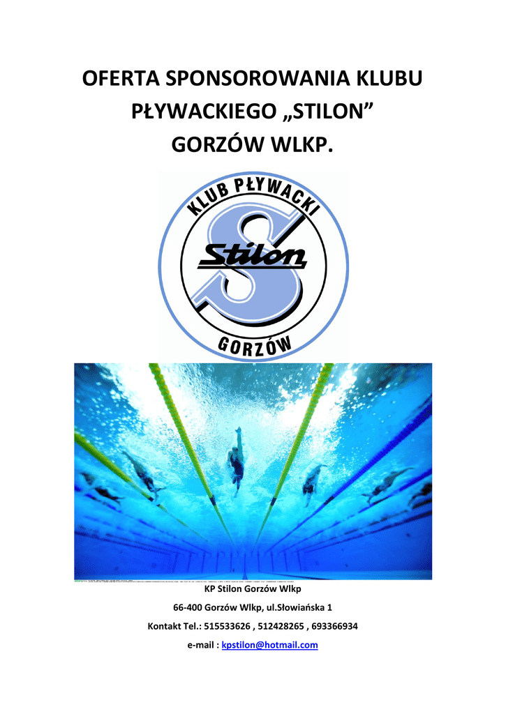 oferta sponsorowania klubu pływackiego „stilon” gorzów wlkp.