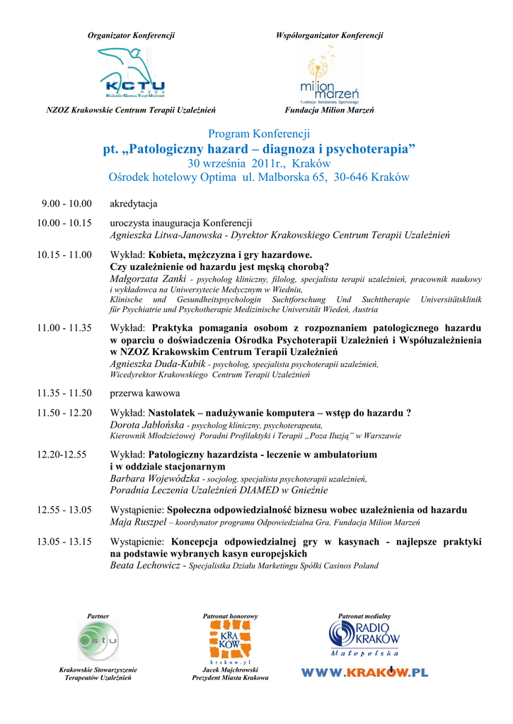 Program Konferencji - Krakowskie Stowarzyszenie Terapeutów
