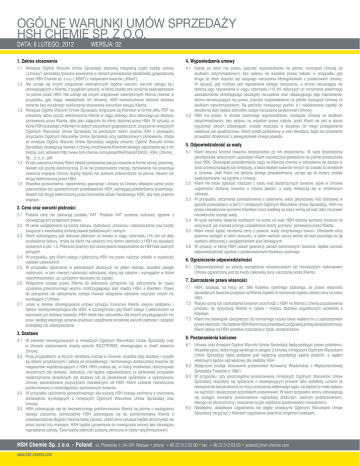 OGÓLNE WARUNKI UMÓW SPRZEDAŻY HSH CHEMIE SP. Z O.O.