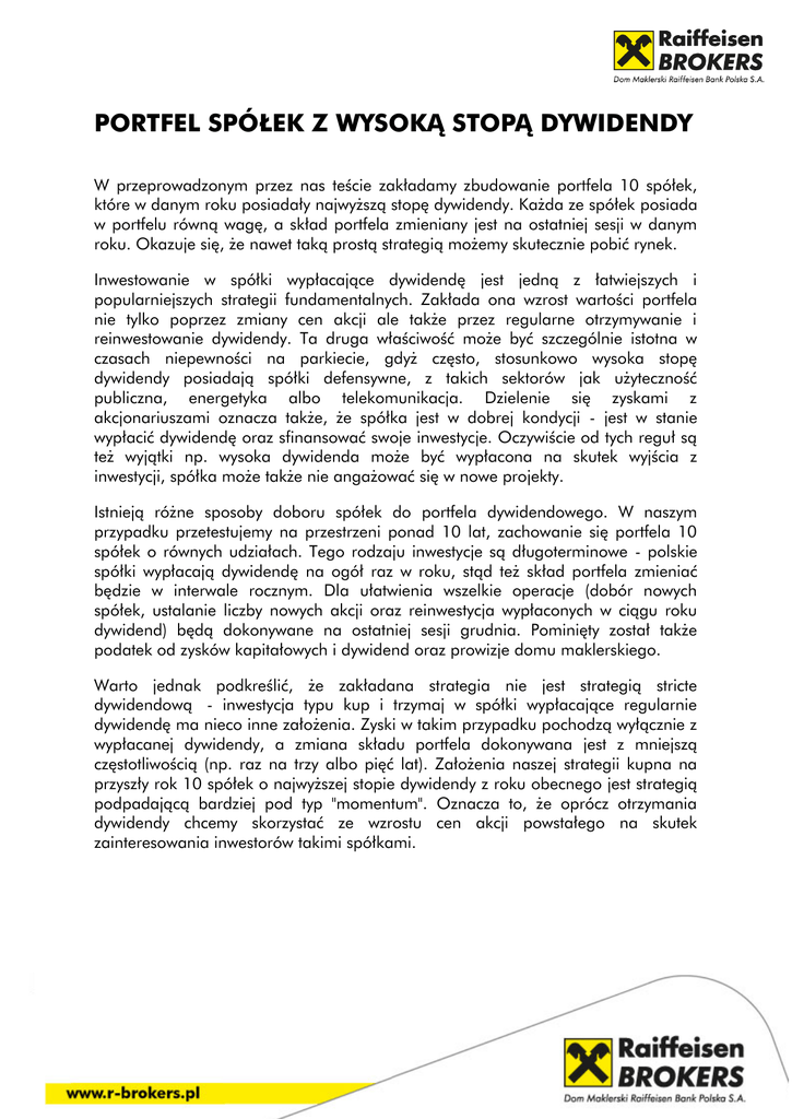 PORTFEL SPÓŁEK Z WYSOKĄ STOPĄ DYWIDENDY