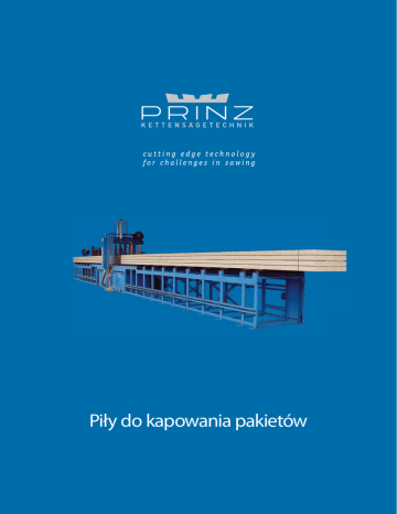 Piły do kapowania pakietów Stacjonarne i przewoźne piły PRINZ do kapowa PC120 – optymalne rozwiązanie dla tartaków i zakładów produkcji palet PRINZ PC120 umożliwia uzyskanie wysokiej wydajności linii oraz pozwala na w pełni automatyczny, nieprzerwany proces produkcji. Dzięki sterownikowi PLC, parametry automatycznego cyklu pracy mogą być łatwo zmieniane, a obustronne, precyzyjne mocowania prowadnicy zapewniają najwyższą dokładność cięcia ±1 mm, również przy maksymalnej wydajności pracy. cięcie płyt gipsowokartonowych stacjonarna jednostka tnąca ze stołami rolkowymi dowolnej długości do kapowania pakietów tarcicy, płyt wiórowych, płyt gipsowo-kartonowych, itp. automatyczny układ pomiarowy w pełni automatyczny proces produkcji z funkcją cięć seryjnych uchylny stół rolkowy po obu stronach jednostki tnącej do łatwego usuwania dłuższych odpadów wygodna i bezpieczna obsługa przez jednego operatora obustronny, pionowy posuw układu tnącego dla dokładności cięcia ±1 mm, przy wydaj- zintegrowane przenośniki do odprowadzania odpadów ności ok. 1.5 min/m² pneumatyczne dociski pakietu po obu stronach prowadnicy CUTSTAR – najwyższa precyzja na małej powierzchni Idealna w sytuacji kiedy potrzebna jest precyzyjna maszyna przy ograniczonym powierzchniowo miejscu na hali. Przejezdna jednostka tnąca CUT STAR kapuje nieruchome pakiety z dokładnością ±1 mm. Kompaktowe i efektywne rozwiązanie dopasowywane do indywidualnych wymagań. automatyczny pomiar ciętych pakietów przy użyciu sterownika PLC dokładność cięcia ±1 mm dzięki precyzyjnemu, obustronnemu prowadzeniu przyłącze do systemu odprowadzania wiórów indywidualnie programowane długości pakietu szybki naciąg łańcucha i układ amortyzujący jego drgania prosta i wygodna obsługa pneumatyczne dociski pakietu po obu stronach prowadnicy ergonomiczny panel operatorski do bezpiecznej obsługi maszyny opcje: funkcja cięć seryjnych, podnoszenie pakietów do bezproblemowego cofania prowadnicy, wbudowane taśmy do odprowadzania odpadów dociskanie pakietu przy cięciu ania pakietów MOBIL CUT – dla optymalnej produkcji Maszyny PRINZ z przejezdną jednostką tnącą wypełniają lukę pomiędzy tańszymi piłami przewoźnymi na kołach a automatycznymi liniami ze stołami rolkowymi. MOBIL CUT pozwala na kapowanie pakietów o długości 6 m, przy długości ramy stołu niespełna 8 m. Masywny łuk prowadzący gwarantuje równą i gładką powierzchnię po cięciu, z dokładnością ±2 mm. Bez ponoszenia dużych nakładów inwestycyjnych możliwe jest znaczne zwiększenie wydajności produkcji oraz polepszenie jakości produktu. kapowanie pakietów o długości do 6 m na małej powierzchni dokładność cięcia ±2 mm mocna konstrukcja obliczona na wiele lat użytkowania wygodna platforma operatora pomiar i cięcie pakietów do 130x130 cm manualny lub elektryczny posuw jednostki tnącej manualny lub hydrauliczny posuw prowadnicy opcje: wskazanie długości na wyświetlaczu LED, automatyczny układ pomiaru długości, wbudowane taśmy do odprowadzania odpadów precyzyjne prowadzenie jednostki tnącej stabilne prowadzenie prowadnicy TKSF (L/S/VA) – mobilne i wydajne, do uniwersalnych zastosowań Przewoźne piły PRINZ to idealne modele podstawowe do wydajnego kapowania pakietów i drewna okrągłego. Łatwe w manewrowaniu, stanowią wygodną alternatywę do pił ręcznych jedno- i dwuosobowych. Z odpowiednio dobranym układem tnącym Prinz, idealnie nadają się do cięcia takich materiałów jak płyty gipsowe, role papieru, rury z tworzyw sztucznych, itd. wysoka dokładność i stabilność cięcia dzięki dwóm stabilizatorom szeroki przedni zderzak umożliwiający dokładne, prostopadłe ustawienie maszyny względem ciętego materiału automatyczne smarowanie bezpośrednio od strony ciętego materiału, dla optymalnej żywotności układu tnącego prowadnice do 250 cm długości, również stelitowane łatwa wymiana łańcucha tnącego dzięki szybkiemu i wygodnemu układowi naciągu smarowanie układu tnącego również do kapowania drewna okrągłego Uniwersalne piły PRINZ do kapowania pakietów PC120 CUTSTAR MOBILCUT/BPSS/BPSH TKSFL/TKSFS/TKSFVA Moc 15 kW 15 kW 7,5 kW/11 kW 7,5 kW/11 kW Silnik elektryczny elektryczny elektryczny elektryczny/spalinowy ±1 mm ±1 mm ±2 mm ±4 mm 130x130 cm 130x130 cm 130x130 cm 130x130 cm tak tak tak tak silnik przekładniowy silnik przekładniowy manualny/hydrauliczny manualny obustronne, precyzyjne prowadzenia liniowe obustronne, precyzyjne prowadzenia liniowe masywny łuk prowadzący 2 stabilizatory stacjonarna jednostka tnąca/ ruchomy pakiet przejezdna jednostka tnąca/ nieruchomy pakiet przejezdna jednostka tnąca/ nieruchomy pakiet przewoźna Typ łańcucha strugający/widiowy strugający/widiowy strugający/widiowy strugający/żłobikowy/ widiowy Prowadnica pełna stal stelitowana pełna stal stelitowana pełna stal stelitowana pełna stal hartowana indukcyjnie lub stelitowana 1,5 min/m2 1,5 min/m2 1,8 min/m2 2 min/m2 silnik przekładniowy z falownikiem silnik przekładniowy z falownikiem silnik przekładniowy z falownikiem/ręczny ręczny Dostępność systemu pomiarowego tak tak tak nie Sterowanie SPS SPS SPS/ręczne ręczne w pełni automatyczny proces produkcji z dokładnością cięcia ±1 mm, nieograniczona długość ciętego pakietu przejezdna jednostka tnąca do kapowania pakietów o długości do 6m z dokładnością cięcia ±1 mm, przy ograniczonym miejscu na hali przesuwna jednostka tnąca do kapowania pakietów o długości do 6m z dokładnością cięcia ±2 mm, przy ograniczonym miejscu na hali kapowanie pakietów lub drewna okrągłego bez konieczności ich przemieszczania manualny lub automatyczny system pomiaru długości ciętego pakietu automatyczny system pomiaru długości ciętego pakietu pomiarowy wyświetlacz cyfrowy LED lub automatyczny system pomiaru długości ciętego pakietu zderzak do okrąglakó
