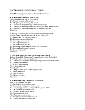WSPÓŁCZESNE SYSTEMY POLITYCZNE Red.: Marek Żmigrodzki