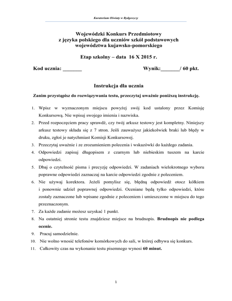 Język polski - test - Kuratorium Oświaty w Bydgoszczy