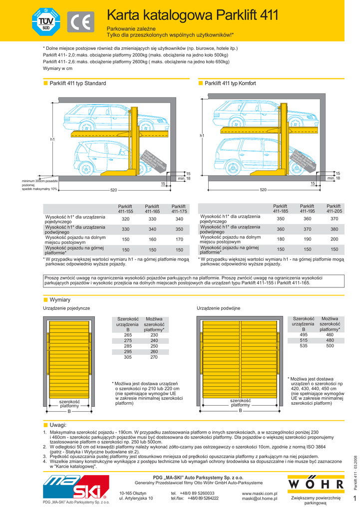 Karta katalogowa Parklift 411