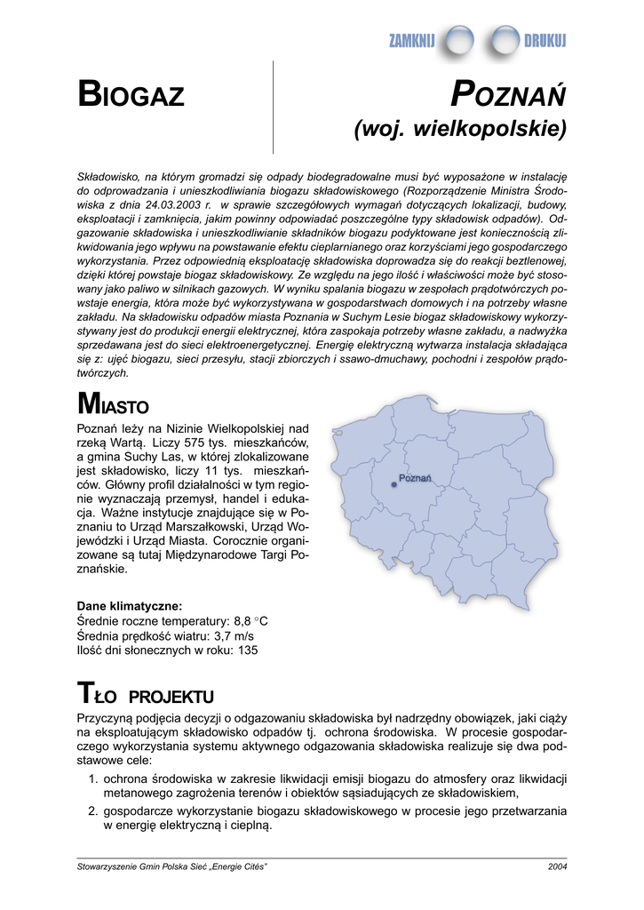Pozna«, Biogaz - Stowarzyszenie Gmin Polska Sieć „Energie Cités”