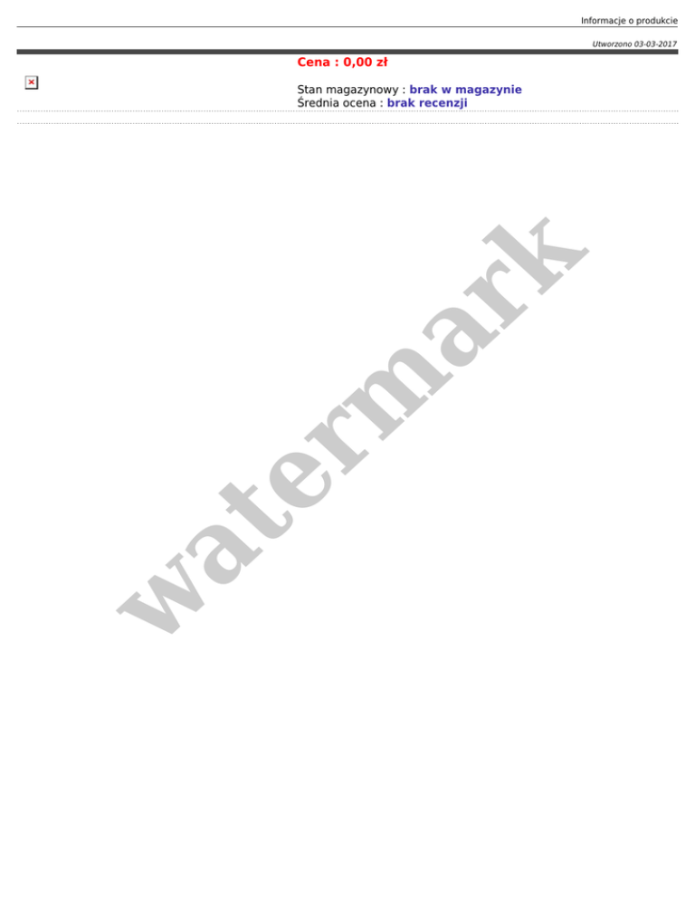 Informacje o produkcie Utworzono 03-03-2017 Cena : 0,00 zł w at er m ar k Stan magazynowy : brak w magazynie Średnia ocena : brak recenzji