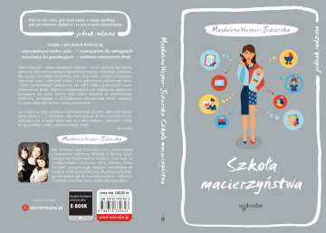 Magdalena Wegner-Jezierska Mama domowa – wbrew obiegowym opiniom – może i powinna być kobietą spełnioną. Rola mamy wzbogaca kompetencje osobiste i kształtuje osobowość. Nie zubaża i nie zawęża horyzontów, wręcz przeciwnie – rozwija umiejętności organizacji czasu z dzieckiem u boku i uczy pokonywania codziennego stresu. „Szkoła macierzyństwa” podpowiada, jak radzić sobie z trudnościami natury emocjonalnej (krzyk, depresja okołoporodowa) oraz logistycznej (propozycja biznesplanu dla mam). Zawiera także krótkie ćwiczenia do samodzielnego wykonania, pomagające w uporządkowaniu wewnętrznego świata i poznaniu na nowo siebie jako kobiety i mamy jednocześnie. „Co zmienia w tobie realizacja niepowtarzalnego projektu, jakim jest wychowanie dziecka? […] Chciałabym, aby mamy poczuły, że macierzyństwo to najpiękniejszy dar, że dzięki niemu stały się w pełni osobami – kobietami i udało im się wydobyć z siebie najwartościowsze cechy”. Od autorki Magdalena Wegner-Jezierska jest doktorem nauk humanistycznych, psychologiem i mediatorem rodzinnym. Wykłada w Wyższej Szkole Umiejętności Społecznych w Poznaniu. Przez wiele lat współpracowała z poznańską szkołą rodzenia „Dobry Początek”, przygotowując adeptów rodzicielstwa do podjęcia zadań wychowawczych. W praktyce psychologicznej specjalizuje się w pomocy rodzinie i dzieciom. Prywatnie szczęśliwa żona i mama pięciorga dzieci. cena det. 00,00 zł Patronat medialny: Magdalena Wegner-Jezierska Szkola macierzynstwa • odpowiedzią na trudne czasy • rozwiązaniem dla zabieganych • wskazówką dla poszukujących • zaufanym towarzyszem drogi © Copyright by Magdalena Wegner-Jezierska, 2016 © Copyright for this edition by Wydawnictwo W drodze, 2016 Redaktor Paulina Jeske-Choińska Skład i łamanie Stanisław Tuchołka ● panbook.pl Redaktor techniczny Justyna Nowaczyk Projekt okładki i stron tytułowych Radosław Krawczyk Fotografia na okładce Joanna Zielińska ISBN 978-83-7906-084-9 Wydawnictwo Polskiej Prowincji Dominikanów W drodze sp. z o. o. Wydanie I, 2016 ul. Kościuszki 99, 61-716 Poznań tel. 61 852 39 62, faks 61 850 17 82 [email protected] www.wdrodze.pl Mojemu ukochanemu mężowi Marcinowi oraz naszym dzieciom – wspaniałym nauczycielom macierzyństwa Od autorki Szkoła macierzyństwa została zainspirowana praktyką pracy psychologicznej z młodymi mamami, które właśnie wkroczyły na drogę macierzyństwa lub odbywały przygotowania do tej roli w szkole rodzenia. Podjęcie zadań mamy małego dziecka często oprócz radości młodych kobiet niosło ze sobą wiele trudności natury psychologicznej. Mamy skarżyły się, że nie są w stanie zadowolić wszystkich sposobem realizowania macierzyństwa. Czasami były przygniecione krytyką, niezależnie od tego, w jaki sposób postępowały. Pracując w domu i opiekując się dzieckiem, czuły się niedoceniane, gdy zaś powracały do pracy zawodowej – bywało, że krytykowano je i uważano za wyrodne matki. Wielka radość wynikająca z przyjścia na świat wymarzonego maleństwa mieszała się z lękiem o własny rozwój, trudnościami związanymi z wahaniami nastroju, niewiarą w siebie i zagubieniem w nowej roli. Wyjątkowo ważna w pracy nad książką była konfrontacja wiedzy psychologicznej z moim osobistym doświadczeniem związanym z urodzeniem i wychowaniem pięciorga dzieci na przestrzeni kilkunastu lat. Każdy z maluszków, 7 Szkoła macierzyństwa przyjmowany z miłością i radością, jednocześnie znacząco wpływał na wiele aspektów codziennego życia, od jego rytmu, po charakter podejmowanej przeze mnie pracy zawodowej. Pod wpływem doświadczeń zmianom uległy także moje wyobrażenia o roli macierzyńskiej. Setki codziennych obserwacji samej siebie w procesie stawania się mamą, próby łączenia życia domowego z zawodowym, okresy budowania siebie jako kobiety domowej, a także te, kiedy praca zawodowa wysuwała się na pierwszy plan, pozwoliły mi z rzetelnością i odpowiedzialnością postawić tezę, iż to właśnie macierzyństwo jest zadaniem o ogromnym potencjale dla rozwoju osobistego kobiety. Warto, aby mamy wychowywały swoje dzieci z pełną świadomością wartości tej roli i jej wpływu na własny rozwój, w takich obszarach jak wzbogacanie kompetencji osobistych, kształtowanie osobowości czy rozwijanie umiejętności organizacyjnych. Szkoda, że tak wiele młodych kobiet gubi się w tym procesie i jako szansę na rozwój własnej osoby widzi jedynie karierę zawodową lub realizację hobby. Powtarzają mity, iż macierzyństwo zubaża i zawęża horyzonty. Nie dostrzegają złożoności i bogactwa tej roli. Sądzą, że rola mamy stoi w opozycji do samorozwoju, pozytywnego wizerunku aktywnej bizneswoman czy osoby inwestującej w siebie. Między innymi przez taką perspektywę adaptacja do nowego trybu życia jest dla wielu z nich niezwykle trudna. Czasami kobiety potrzebują wsparcia, aby umiały oprzeć się silnej presji lub niechęci szczególnie tych osób, które nie zdecydowały się na urodzenie dziecka lub podjęły się 8 Od autorki pracy zawodowej, uciekając od zadań macierzyńskich. Inne młode mamy potrzebują się określić i zrozumieć, czy bycie mamą to wyłącznie ich prywatna sprawa, czy też mają prawo oczekiwać specjalnego traktowania. „Napisanie nowej historii o sobie samej” w tej szczególnej roli to zadanie każdej świeżo upieczonej mamy małego dziecka. Chciałabym, aby ta książka pomogła mamom czerpać ogromną radość z macierzyństwa, była tarczą przy realizacji ich życiowej roli i wskazówką dla ich rozwoju osobistego, w czasie kiedy wychowują dziecko. Aby wyraźnie poczuły i mogły z pełnym przekonaniem stwierdzić, że macierzyństwo to najpiękniejszy dar, że dzięki niemu stały się w pełni osobami – kobietami i udało im się wydobyć z siebie najwartościowsze cechy osobowości, doskonalić umiejętno