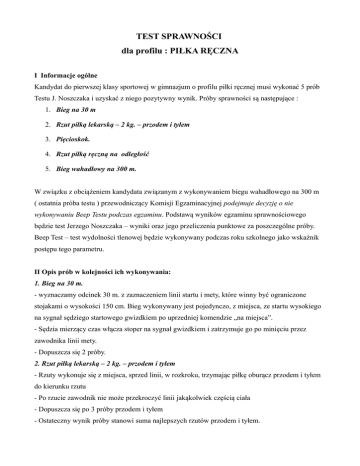 TEST SPRAWNOŚCI dla profilu : PIŁKA RĘCZNA