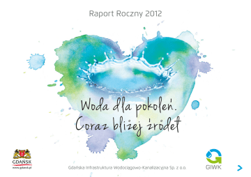 Raport Roczny 2012 Woda d la pokolen‘ . – C oraz bliz°ej z‘ro° del Gdańska Infrastruktura Wodociągowo-Kanalizacyjna Sp. z o.o. Spis tres‘ci 3 List Prezydenta Miasta Gdańska Pawła Adamowicza 5 List Prezesa GIWK Jacka Skarbka 7 Rada nadzorcza 8 Zarząd i Dyrekcja spółki 9 Wodna architektura miejska 13 Kalendarz wydarzeń 17 Inwestycje 23 Zasoby wód podziemnych 28 Energia z wody 31 Mieszkańcy Gdańska o wodzie i inwestycjach ekologicznych 37 Edukacja ekologiczna 40 GIWK porusza 43 Odpowiedzialność ekonomiczna Raport Roczny 2012 2 List Prezydenta Miasta Gdańska Gdan‘skie zdroje Gdańsk jest miastem nierozerwalnie związanym Wspólnie z mieszkańcami aranżujemy z wodą. Miasto to powstawało w otoczeniu przyrody. i decydujemy o wyglądzie naszej publicznej zazielenione place, skwery i parki, a w nich fontanny, zaprojektowany specjalnie dla naszego miasta – dawny urok tym miejscom poprzez nową małą przestrzeń i świetnie ją dopełnia. To kolejny Ważnym jego elementem były promenady spacerowe, poidełka i zdroje. Od lat sukcesywnie przywracamy przestrzeni. Nasz zdrój, GDAŃSKI ZDRÓJ – bo doskonale wpisuje się w unikatową nadmorską architekturę miejską. Jednym z kolejnych kroków krok, którym Gdańsk na swoje ulice wprowadza pasa nadmorskiego. Wracamy do źródeł w sensie A gdańska przestrzeń publiczna właśnie taka było zainstalowanie zdrojów wodnych wzdłuż dosłownym – do źródeł bardzo dobrej jakościowo wody gdańskiej, jak również w sensie historycznym – przemyślaną i atrakcy jną małą architekturę. ma być – przy jazna i wysoce estetyczna. do źródeł tego miasta i jego historii. Raport Roczny 2012 3 Bardzo cieszy mnie fakt, że gdańskie zdroje są prezentowane na licznych pokazach i wystawach wzornictwa i małej architektury, np. w ramach wystawy „Ładny kraj” goszczącej między innymi w Gdyni i Warszawie. Pocieszający jest fakt ciepłego przy jęcia tej inicjatywy oraz dbałość mieszkańców o instalacje. Mam nadzieję, że Gdańsk doczeka się kolejnych instalacji wodnych, które będą cieszyć mieszkańców i odwiedzających nas turystów. Z pewnością kolejną z nich będzie fontanna na Placu im. Heweliusza. Prezydent Miasta Gdańska Paweł Adamowicz Raport Roczny 2012 4 List Prezesa GIWK Nowa strategia giwk 2012 rok był dla naszej Spółki wy jątkowo ważny Niezmiernie cieszy mnie fakt, że coraz wdrożyliśmy nową strategię rozwoju Spółki, zarządzania projektami, która pozwala zwiększyć udało nam się wspólnie przeprowadzić. Ich sposób realizujemy między innymi projekt i niósł ze sobą wiele zmian. Przede wszystkim co niosło za sobą zmiany organizacy jne, jakie więcej przedsięwzięć realizujemy w formule efektywność i jakość naszej pracy. W ten udane wdrożenie pozwoli racjonalnie zarządzać budowy fontanny, upamiętniającej Gdański przeprowadzać inwestycje, optymalizować obsługę się do zmiany sposobu eksploatacji ujęcia wody nieruchomościami, efektywnie i bezpiecznie interesantów, a także wewnętrzne funkcjonowanie. Raport Roczny 2012 projekt wodno-ściekowy, oraz przygotowujemy powierzchniowej w Straszynie. 5 W 2012 roku postawiliśmy także pierwsze kroki w branży energii odnawialnej. Wymagało to od nas zmierzenia się z nowymi zagadnieniami Ten rok był czasem testu dla wszystkich, którzy tworzą GIWK. Przeszliśmy próbę wspólnie, nie bez wysiłku, ale z pewnością ze wspólnym organizacy jnymi i prawnymi. Dziś Elektrociepłownia zaangażowaniem. Drogowskazem, który będzie szukanie oraz wdrażanie kolejnych możliwości działalności, jest nasza misja „Woda dla pokoleń. Biogazowa działa sprawnie i mamy czas na nas prowadził w kolejnych latach naszej wykorzystania potencjału działalności wodnej Coraz bliżej źródeł”. energii”. Prezes zarządu i ściekowej do dalszego pozyskiwania „zielonej Jacek Skarbek Raport Roczny 2012 6 Rada nadzorcza zgromadzenie wspólników Funkcje Zgromadzenia Wspólników pełni Prezydent Miasta Gdańska kompetencje właścicielskie rada nadzorcza Jan Michalski przewodniczący Bogusław Wasilewko wiceprzewodniczący Maria Skoroszewska-Romel sekretarz Ryszard Bongowski członek Kompetencje nadzorcze i kontrolne Raport Roczny 2012 7 Zarząd i Dyrekcja spółki zarząd i Dyrekcja spółki Peteris Gailitis Jacek Skarbek Ryszard Gajewski CZŁONEK ZARZĄDU prezes zarządu Dyrektor DYREKTOR DS. EKONOMICZNO- ds. techniczno-operacyjnych -ADMINISTRACYJNYCH Kompetencje Zarządu Spółki – kierowanie Spółką w imieniu właściciela Raport Roczny 2012 8 W odna a r c h it e k t ur a miejska Raport Roczny 2012 9 Wodna architektura miejska Konkurs na projekt wzorniczy zdroju ulicznego „Łyk zdrowej wody nad morzem” został ogłoszony w styczniu 2012 roku. W marcu został rozstrzygnięty, a już w lipcu zdroje zostały udostępnione mieszkańcom Gdańska oraz turystom wypoczywającym nad morzem. Konkurs kierowany był do wszystkich, którzy posiadają kompetencje w zakresie projektowania form przestrzennych i którym zależy na atrakcyjnym zagospodarowaniu nadmorskiego deptaka. Zadanie konkursowe polegało na stworzeniu projektu oryginalnego, ale zarazem wzorniczo spójnego i ergonomicznego. Zwycięski projekt został wyłoniony dwuetapowo – spośród 32 prac jury konkursowe wybrało 3 najwyżej oceniane prace. Ostateczną decyzję podjęli mieszkańcy Gdańska w głosowaniu internetowym. Zwyciężył projekt architektów związanych z Gdańskiem – Kai Pobereżny i Michała Podgórczyka. Raport Roczny 2012 10 Wodna architektura miejska Michał Podgórczyk Urodzony w Gdańsku w 1982 roku. Absolwent Politechniki Gdańskiej, wydziału Architektury i Urbanistyki. Od 2009 student studium doktoranckiego na wydziale Inżynierii Lądowej Politechniki Gdańskiej. W latach 2006–2009 studiował na ASP w Gdańsku na wydziale Realizacji Obrazu Filmowego, Telewizyjnego i Fotografii w zakresie fotografii. Od 2009 prowadzi autorsk