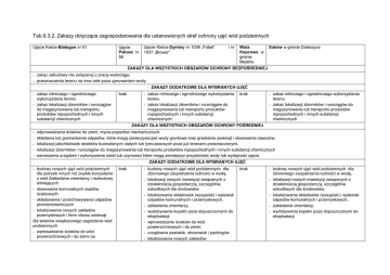 tab.9.3.2. Zakazy do zagospodarowania
