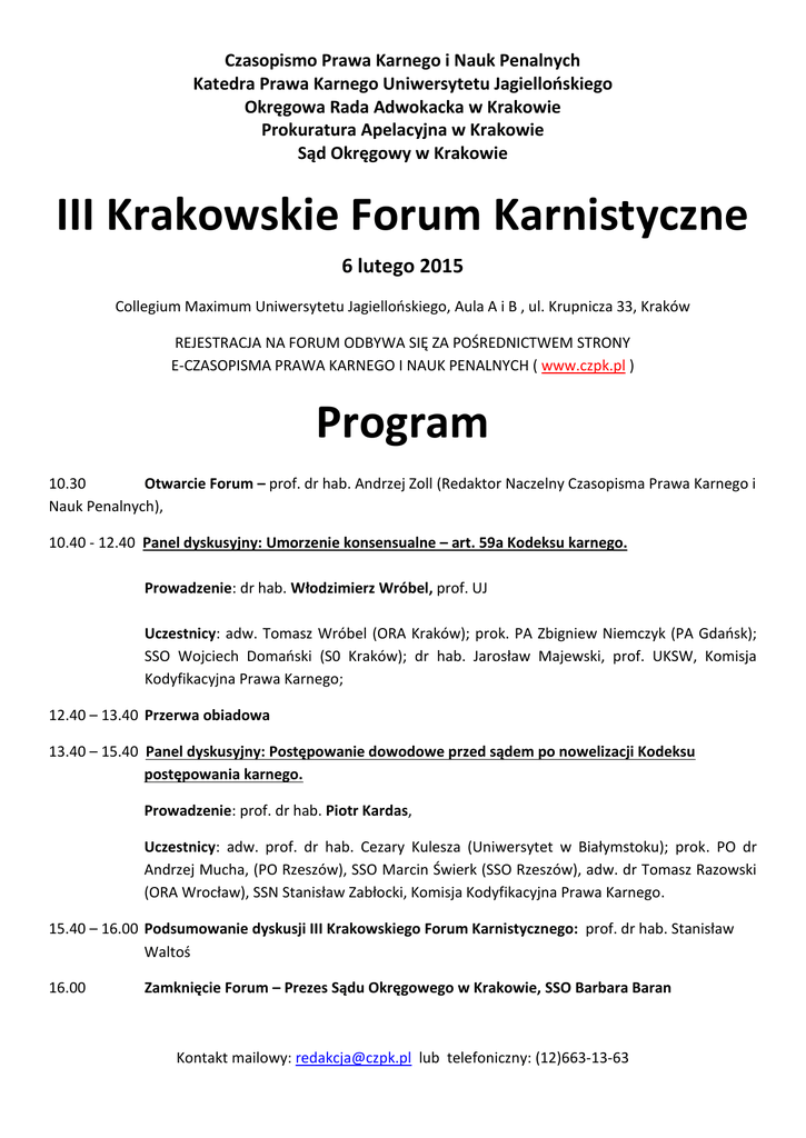III Krakowskie Forum Karnistyczne Program
