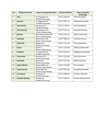 Lp. Nazwa leśnictwa Adres korespondencyjny Numer telefonu Imię i
