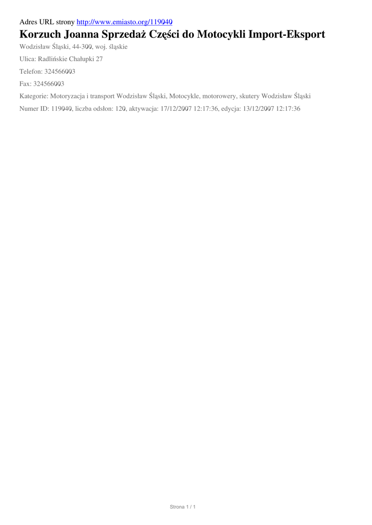 Korzuch Joanna Sprzedaz Czesci do Motocykli Import