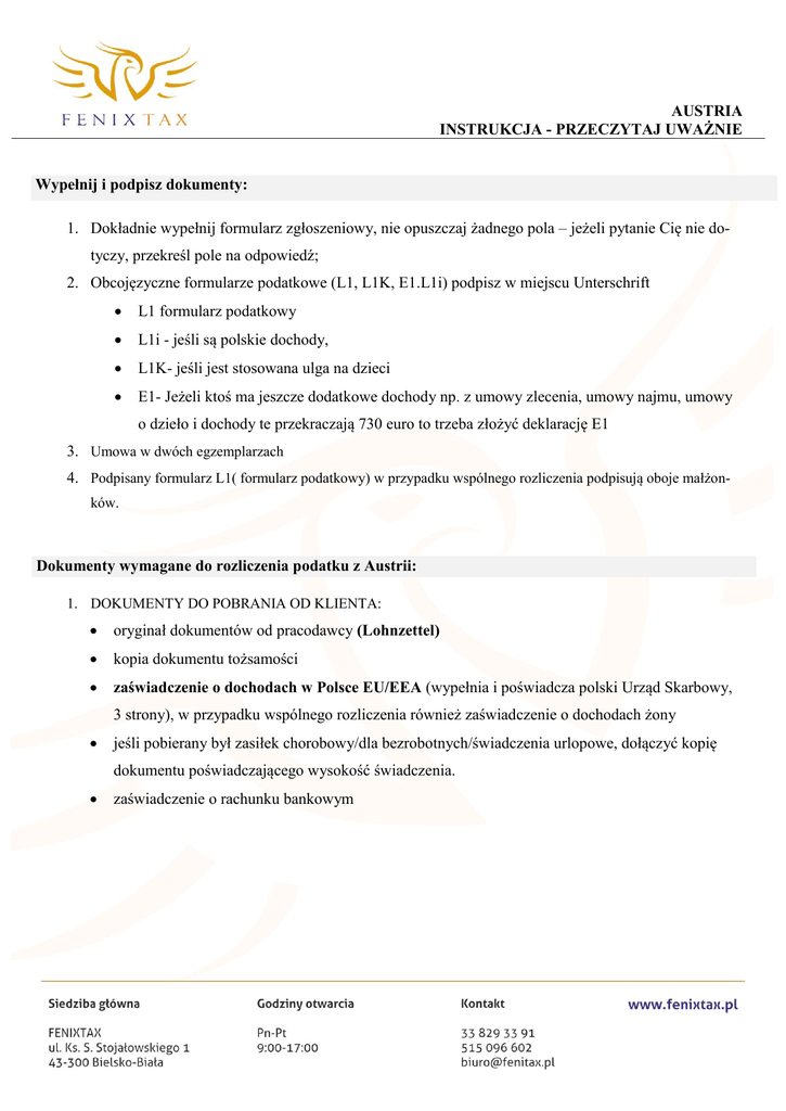 AUSTRIA INSTRUKCJA - PRZECZYTAJ UWAŻNIE Wypełnij i