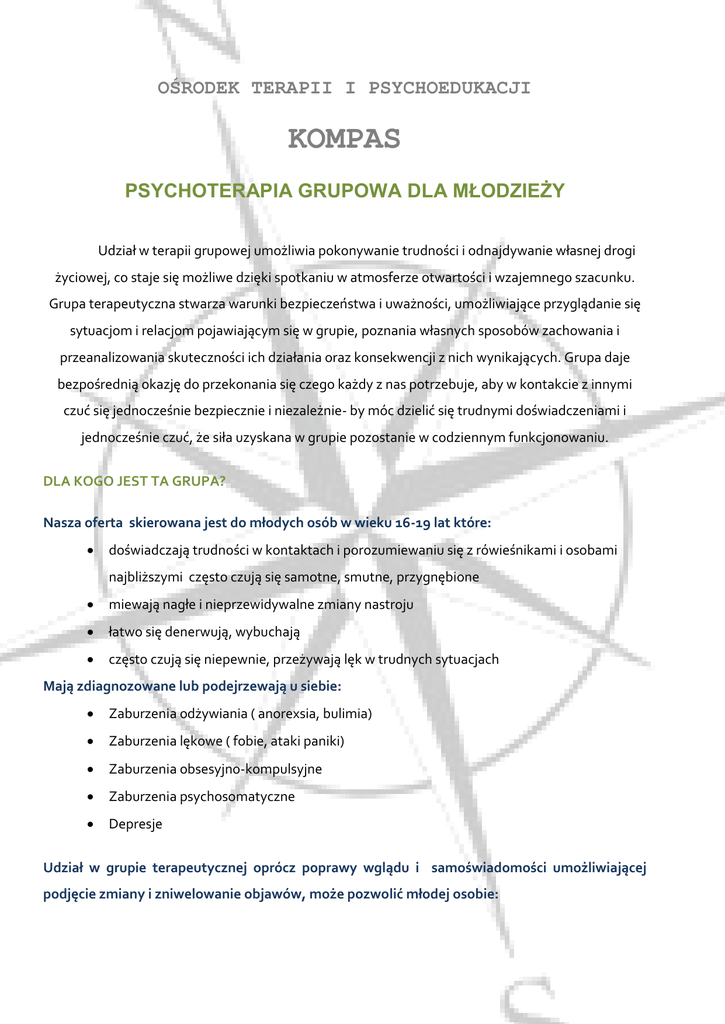 ośrodek terapii i psychoedukacji kompas psychoterapia grupowa