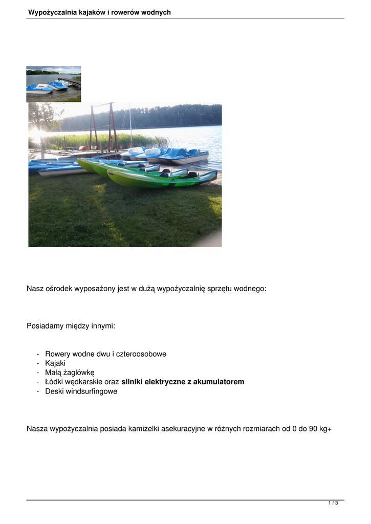 Wypożyczalnia kajaków i rowerów wodnych