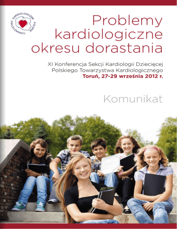 Problemy kardiologiczne okresu dorastania XI Konferencja Sekcji Kardiologii Dziecięcej Polskiego Towarzystwa Kardiologicznego Toruń, 27-29 września 2012 r. Komunikat Szanowni Państwo, Mamy przyjemność poinformować, że w dniach 27–29.09.2012 r. w Toruniu, odbędzie się XI Ogólnopolska Konferencja Naukowo-Szkoleniowa Sekcji Kardiologii Dziecięcej Polskiego Towarzystwa Kardiologicznego. Przygotowaliśmy ciekawy i wszechstronny program naukowy, omawiający najbardziej aktualne problemy w praktyce kardiologa dziecięcego. W tym roku tematem wiodącym Konferencji będą „Problemy kardiologiczne okresu dorastania”. W drugim dniu Konferencji odbędzie się „Sesja Przypadków”, w trakcie której przedstawione zostaną problemy diagnostyczne i terapeutyczne dotyczące dzieci z chorobami układu krążenia. Konferencja będzie okazją do pogłębienia wiedzy nie tylko przez kardiologów dziecięcych i kardiologów, lecz także przez pediatrów, neonatologów, internistów i lekarzy medycyny rodzinnej. Będzie także płaszczyzną dla wymiany doświadczeń oraz forum do dyskusji nad trudnymi przypadkami z codziennej praktyki. Wysoki poziom merytoryczny gwarantują wykładowcy, wśród nich będą najznakomitsi polscy specjaliści w kardiologii dziecięcej. Mamy również nadzieję, iż w czasie imprez towarzyszących odnowimy stare przyjaźnie, poznacie Państwo piękno Torunia, jednego z najstarszych miast w Polsce. Gorąco zapraszamy do licznego i czynnego udziału w naszym spotkaniu. Do zobaczenia w Toruniu! Przewodniczący Komitetu Organizacyjnego dr n. med. Janusz Czarnecki Przewodnicząca Sekcji Kardiologii Dziecięcej PTK prof. dr hab. n. med. Aldona Siwińska Patronat Honorowy Prezes Polskiego Towarzystwa Kardiologicznego prof. dr hab. med. Janina Stępińska Marszałek Województwa Kujawsko-Pomorskiego Pan Piotr Całbecki Prezydent Miasta Torunia Pan Michał Zaleski Naukowy Komitet Honorowy prof. dr hab. n. med. Barbara Dębiec prof. dr hab. n. med. Krystyna Kubicka prof. dr hab. n. med. Maria Popczyńska-Marek prof. dr hab. n. med. Maria Wróblewska-Kałużewska prof. dr hab. n. med. Jan Ereciński prof. dr hab. n. med. Andrzej Sysa JM Rektor Uniwersytetu Mikołaja Kopernika prof. dr hab. Andrzej Radzimiński Atrakcje turystyczne Torunia Serdecznie zapraszamy Państwa do zwiedzenia z nami Muzeum i Domu Kopernika wraz z tradycyjnym wypiekiem piernika. zyka neńc War Wł. Hotel Filmar iku n ow asz yK Prz ia zen rod Od nośc lidar Al. So Si wa ysła ład aW go skie kor i ały W Aleja ła Paw Jana Komitet naukowy Zarząd Sekcji Kardiologii Dziecięcej PTK Przewodnicząca: prof. dr hab. n. med. Aldona Siwińska Przewodnicząca-Elekt: prof. dr hab. n. med. Bożena Werner Poprzedni Przewodniczący: prof. dr hab. n. med. Andrzej Rudziński Sekretarz: dr n. med. Lidia Ziółkowska Skarbnik: prof. dr hab. n. med. Tomasz Moszura Członkowie: prof. dr hab. n. med. Małgorzata Szkutnik dr hab. n. med. Joanna Szymkiewicz-Dangel dr n. med. Maria Miszczak-Knecht dr n. med. Janusz Czarnecki Ge ł ra ne Dom Mikołaja Kopernika Dworzec autobusowy Le o na Sz u Dworzec PKP Toruń Miasto ma na Wa rsz aw ska elfi ilad rF wa Bul i jsk II sk iłsud iego Biuro organizacyjne Grupa Medica s.c. ul. Pomorska 40 91–408 Łódź tel. 75 645 12 40 faks 75 645 12 30 [email protected] www.grupamedica.pl fa P Józe Adres Komitetu Organizacyjnego Wojewódzki Szpital Zespolony Szpital Dziecięcy 87–100 Toruń ul. Konstytucji 3 Maja 42 tel. 56 61 00 522 – sekretariat fax/tel. 56 61 00 769 e-mail: [email protected] most Komitet Organizacyjny Przewodniczący: dr n. med. Janusz Czarnecki Sekretarz: lek. med. Grażyna Zadrozińska Członkowie: lek. med. Anna Bochyńska dr n. med. Ewa Hapyn lek. med. Barbara Iwaniszewska dr n. med. Sabina Langer-Wójcik dr n. med. Henryka Różyńska dr n. med. Roman Stankiewicz lek. med. Ewa Zbucka Dworzec PKP Toruń Główny Kamienice przy ulicy Kopernika (dawniej św. Anny) to najprawdopodobniej miejsce narodzin słynnego astronoma. Nie ma co do tego pewności, albowiem Mikołaj Kopernik (senior), który był ławnikiem sądu Starego Miasta, posiadał kilka kamienic w tej części miasta. Niestety, w ciągu następnych wieków zatarła się pamięć, w której przyszedł na świat jego najmłodszy syn Mikołaj. Wśród historyków toruńskich, od prawie stu lat, trwa dyskusja na temat rzeczywistego miejsca jego urodzin. Kamienice te należały do tak zwanych spichlerzodomów, czyli posiadały zarówno funkcje mieszkalne, jak i magazynowe. Obecny wygląd nadano im podczas przebudowy w latach 1960–1963, przywrócono wówczas ich dawny późnogotycki charakter, fasadę z XV wieku ze schodkowym szczytem i maswerkowymi dekoracjami malarskimi. Dzisiaj w obu kamienicach mieści się Muzeum – „Dom Mikołaja Kopernika” stanowiący oddział Muzeum Okręgowego w Toruniu. W muzeum prezentowane są stałe wystawy: „Wnętrza mieszczańskie”, „Życie i dzieło Mikołaja Kopernika”, „Pracownia uczonego”, „Świat Toruńskiego Piernika” oraz świetnie uzupełniająca całość makieta XV-wiecznego Torunia z ciekawym 20-minutowym programem światło-dźwięk. Całkowity koszt wycieczki wynosi – 25 zł/os. Jeśli są Państwo zainteresowani zapraszamy do zgłoszenia się poprzez formularz zgłoszeniowy. Problemy kardiologiczne okresu dorastania Miejsce obrad: Sala Konferencyjna Hotelu Filmar, Toruń, ul. Grudziądzka 45 Program konferencji 27 września 2012 (czwartek) 16:00 – 18:00 18:00 22:00 Zwiedzanie Muzeum i Domu Kopernika z wypiekiem piernika Zwiedzanie Torunia z przewodnikiem Koncert przy fontannie na Starym Mieście 28 września 2012 (piątek) 8:30 – 9:00Uroczyste otwarcie Konferencji prof. dr hab. n. med. Aldona Siwińska dr n. med. Janusz Czarnecki 9:00 – 9:25Problemy w kardiologii dziecięcej w Polsce Wykład inauguracyjny Konsultanta Krajowego w Dziedzinie Kardiologii Dziecięcej prof. dr hab. n. med. Wanda Kawalec Sesja I 9:30 – 11:30 Problemy 