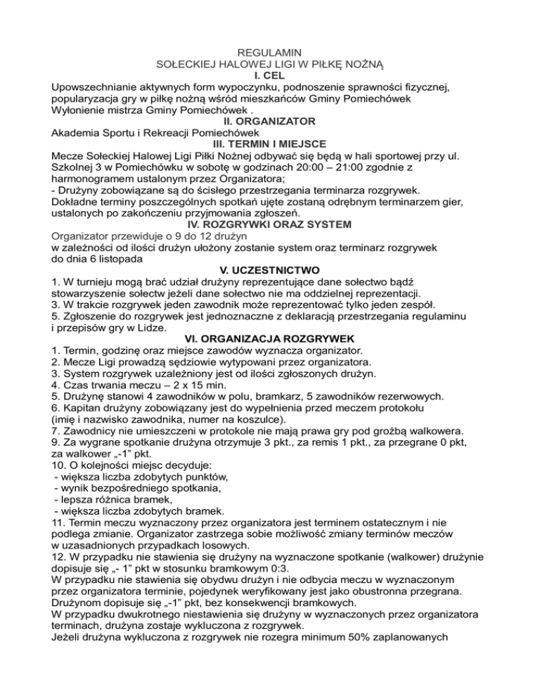 REGULAMIN SOŁECKIEJ HALOWEJ LIGI W PIŁKĘ NOŻNĄ I. CEL