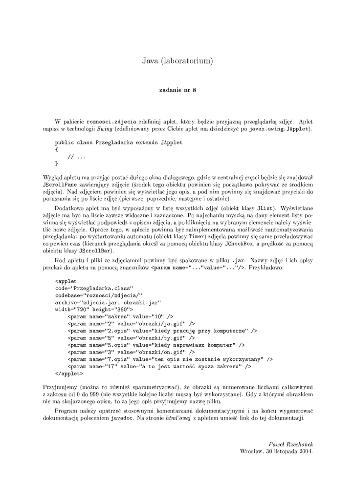 Kod apletu i pliki ze zdj¦ciammi powinny by¢ spakowane w pliku .jar. Nazwy zdj¦¢ i ich opisy