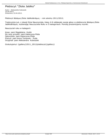Plebiscyt „Złote Jabłko” - rok szkolny 2011/2012.