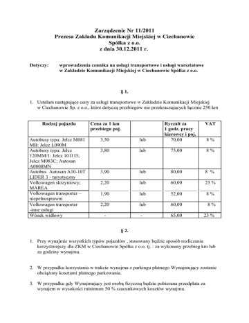 Zarządzenie Nr 11/2011 Prezesa Zakładu Komunikacji Miejskiej w