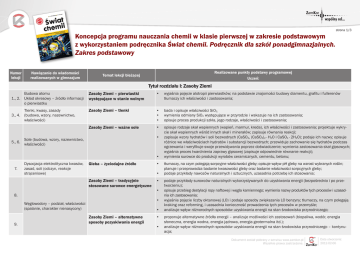 Koncepcja programu nauczania chemii w klasie pierwszej