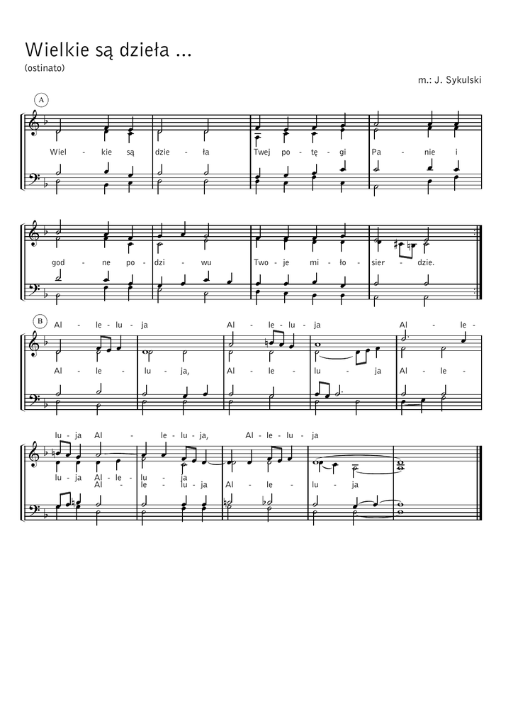 Wielkie są dzieła ... (ostinato) m.: J. Sykulski A &b ˙ Wiel - œœ œœ ˙ kie są dzie œ œ ˙ ˙ œ ˙ ła Twej po - tę ˙ ˙ œœ œ œ œœ œ œ œ ˙˙ œ œ œœ œœ wu - œœ œœ ne po - dzi - œœ œ ? ˙ b ˙ B Al &b ˙ Al ? - - ˙ b ˙ lu - ja & b n œœ œ œœ lu - ja ? b œ œ n œœ œ œ œ˙ œ ˙ Al ˙œ œ œ ˙ ˙ ˙ ja, Al le - lu ˙ ˙ ˙ ˙ Al ˙ œ - - œ˙ œ Al - le - lu Al le - ˙ ˙ ˙ ˙ œ˙ œ œ ja lu - ja œœ œœ œ œ - - ˙ ˙ le - lu - ja, œ˙ œ œ Two - je œ le - lu - ja w˙ Pa œœ & b ˙˙ - gi œœ œ œ god ˙˙ œ œ ˙ b ˙ ? œœ ˙ - ˙ ˙ œ œ - sier le - w ˙ lu .. - le - - le ˙ œ œ ˙˙ ˙ Al le lu ja ˙ ˙ dzie. Al wœ œ b ˙˙ .. ja - - œ œ œ œ œ œ˙ œ œ n ˙˙ œ œ ˙. ˙ œ˙ œ - i ˙ ˙ Al - le - lu - ja - nie Al œ œ ˙. ˙ ˙ ˙ - ˙ ˙ œ œ le - lu - ja nœ œ œ ˙ œœ ˙œ # œ n œ ˙˙ mi - ło œ œ - œœ œ˙ ww œ w w ˙ œ -