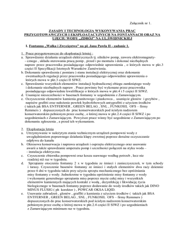 PRZYGOTOWAWCZYCH I EKSPLOATACYJNYCH NA FONTANNACH ORAZ NA