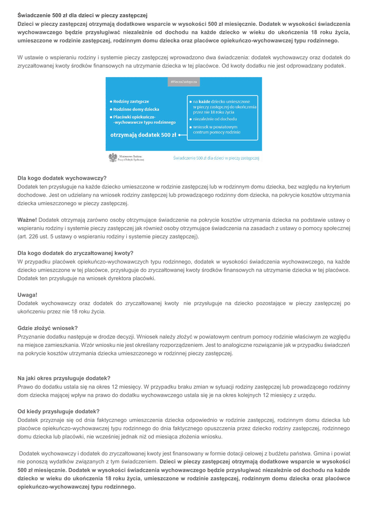 Świadczenie 500 zł dla dzieci w pieczy zastępczej Dzieci w