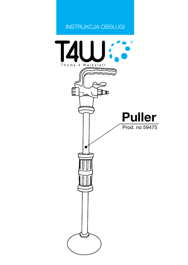 INSTRUKCJA OBSŁUGI Puller Prod. no 59475 Lista części.................................................................................... 3 Opis urządzenia.............................................................................. 4 Środowisko pracy.......................................................................... 4 Bezpieczeństwo osobiste............................................................... 4 Schemat połączenia....................................................................... 5 Opis działania................................................................................. 5 Konserwacja.................................................................................. 6 2 Lista części 1 Śruby do uchwytu 2 Uchwyt 3 Filtr 4 Uszczelka 5 Wsparcie uchwytu 6 Nakrętka 7 Nakrętka wspierająca uchwyt - kolnierz 8 Drążek 9 Boczne nakrętki uchwytu 10 Nasadka na drążek 11 Uchwyt nasadki 12 Kopułka 13 Przyssawka 125mm 14 Przyssawka 100mm 15 Przyssawka 75mm 16 Uszczelki 17 Mocowanie haczyka 18 Hak 19 Pokrywa przyssawki 125mm 20 Pokrywa przyssawki 100mm 21 Pokrywa przyssawki 75mm 22 Zawór 23 Zaślepka 3 OSTRZEŻENIE! Proszę przeczytać instrukcję obsługi przed użyciem urządzenia i zachować ją w bezpiecznym miejscu. Przed dopuszczeniem kogoś do korzystania z tego produktu, upewnij się, że jest świadomy ryzyka wynikającego z użycia sprzętu.. OSTRZEŻENIE! Omówione w niniejszej instrukcji uwagi odnośnie możliwego ryzyka nie są w stanie przewidzieć wszystkich możliwych warunków i sytuacji, które mogą wystąpić. Zdrowy rozsądek i ostrożność nie są częścią tego produktu, ale muszą być zachowane przez operatora. tę instrukcję dla swego bezpieczeństwa, z czasem LLZachowaj odświeżyć pamięć odnośnie bezpiecznego używania przyrządu. warto Opis urządzenia Przy użyciu naszego Pullera można szybko i efektywnie usuwać wgniecenia w karoserii bez niszczenia przy tym lakieru. Urządzenie podłącza się do instalacji sprężonego powietrza. Po naciśnięciu dźwigni w przyssawce wytwarza się podcieśnienie, za pomocą którego można łatwo wyciągać wgniotki. W zestawie 3 wymienne przyssawki o średnicach: Ø 75mm, 100mm, 125mm Środowisko pracy • Miejsce pracy należy utrzymywać czyste i dobrze oświetlone • Nie stosować w miejscu pracy łatwopalnych gazów lub cieczy. • Osoby postronne oraz rzeczy nie wchodzące w skład wyposażenia trzymać z dala od miejsca pracy. czynniki rozpraszające pracę do minimum. Chwila nieuwagi LLZminimalizuj może spowodować wypadek. • Przechowuj narzędzia w odpowiednio suchym i bezpiecznym miejscu, aby zapobiec korozji lub uszkodzeniu. • Zawsze zabepieczaj narzędzia i trzymaj je z dala od dzieci. Bezpieczeństwo osobiste • Noś właściwe ubranie ochronne. Używaj środków ochrony osobistej. Chroń swoje ręce używając odpowiednich rękawic. Noś maskę zabezpieczającą twarz. Chroń swoją głowę przed spadającymi przedmiotami - pamiętaj o kasku. Używaj 4 jedynie atestowanych środków ochrony osobistej. • Bądź ostrożny w trakcie pracy, uważaj na to, co robisz i używaj zdrowego rozsądku. • Trzymaj luźne elementy odzieży, biżuterę, włosy itp, z dala od narzędzia, aby uniknąć wkręcania w ruchome części przyrządu. • Nie używaj urządzenia, gdy jesteś zmęczony, pod wpływem narkotyków, alkoholu lub leków. • Stabilna pozycja i równowaga ciała w trakcie pracy, umożliwia lepszą kontrolę nad narzędziem w nieoczekiwanych sytuacjach. Schemat połączenia 1 2 3 4 Przewód sprężonego powietrza Filtr Regulator ciśnienia 1 5 Odolejacz szybkozłączka (opcjonalnie) Opis działania 5 • Upewnij się, że miejsce wgniecenia na karoserii jest suche, czyste i wolne od tłuszczu. • Wybierz odpowiedni rozmiar przyssawki, zamocuj i zdejmij pokrywę ochronną z kielicha. • Upewnić się, że zawór jest w pozycji “OFF”. Podłącz przyrząd do instalacji sprężonego powietrza - ciśnienie pracy waha się między 5 bar a 8 bar (ciśnienie robocze wynosi ok 6.2 bar (90 psi)). • Umieść przyssawkę w miejscu wgniecenia i dociśnij ją delikatnie. • Otworzyć zawór sprężonego powietrza - pozycja “ON” zaworu. • Za pomocą uchwytu pullera, odpompuj powietrze (patrz rys pobniżej). Rób to z wyczuciem. • Po zakończeniu, zamknij zawór powietrza i ściągnij przyssawkę z miejsca wgniecenia. • Odłączyć dopływ powietrza, załóż pokrywę ochronną. Umieść wszystkie części przyrządu w walizce i przechowuj ją w bezpiecznym i suchym miejscu. • Alternatywnie, użyj haka w połączeniu z pullerem aby usunąć większe wgniecenia. Konserwacja Należy regularnie sprawdzać stan przyssawek, w razie uszkodzenia, wymień je przy użyciu wyłącznie oryginalnych części. Dbaj o to aby przyssawki były czyste i wolne od olejów i smarów. Regularnie 6 czyść je nieagresywnym środkiem czyszczącym. Przedłuży to ich żywotność. W celu zachowania elastyczności, nie narażać przyssawek na dłuższe działanie światła słonecznego. Narzędzie utrzymywać w czystym, nienaganny stanie, używając do czyszczenia lekko zwilżonej środkami nieagresywnymi ściereczki. 7 Thoma +48 95 741 11 62 [email protected] • www.t4w.eu Tel./Fax: