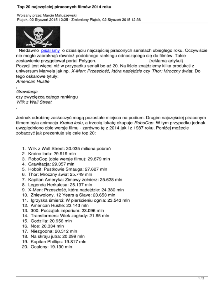 1. Wilk z Wall Street: 30.035 miliona pobrań