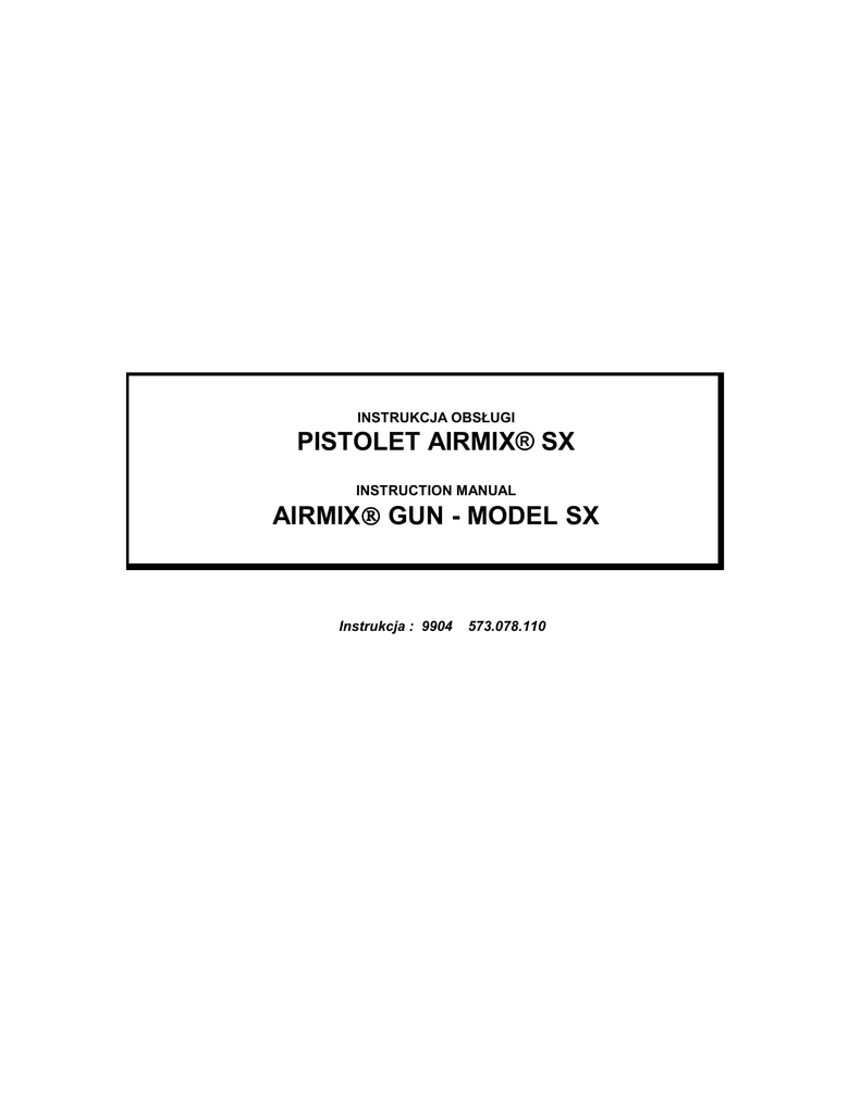 INSTRUKCJA OBSŁUGI PISTOLET AIRMIX® SX INSTRUCTION MANUAL AIRMIX GUN - MODEL SX Instrukcja : 9904 573.078.110 1. ZALECENIA BHP Personel obsługujący musi być przeszkolony w obsługiwaniu sprzetu. Zamieszczone niżej zalecenia BHP musza być dobrze zrozumiane i stosowane w praktyce. Aby uniknąć zagrożen dla zdrowia, niebezpieczeństwa pożaru lub wybuchu, urządzenia należy stosowac tylko w strefach o odpowiedniej wentylacji. Urządzeń natryskowych nie wolno kierować w kierunku ludzi i zwierząt. Rozpylanie niektórych środków może być niebezpieczne i bezpieczeństwo ludzi może wymagać zastosowania ochrony dróg oddechowych (maski) i skóry (krem ochronny do rąk). Ponieważ ciśnienie robocze urządzeń jest wysokie, w celu uniknięcia wypadku należy stosować poniższe środki ostrożności : PRZEWODY Nie stosować przewodów których graniczne ciśnienie rozerwania jest niższe niż 4-krotność moksymalnego ciśnienia roboczego pompy. Nie wolno dopuszczać do zaginania i zapętlania przewodów. Należy stosować wyłącznie przewody w dobrym stanie, nie noszace śladów uszkodzeń ani nadmiernego zużycia. Do połączenia pompy z pistoletem wolno używać wyłącznie przewodów o własnościach antyelektrostatycznych. Wszystkie złączki muszą być dobrze skręcone i znajdować się się w dobrym stanie. POMPA Uziemić urządzenie (wykorzystać przyłącze przewidziane do tego celu na pompie). Nie używać produktów i rozpuszczalników niekompatybilnych z materiałami pompy, a w szczególności rozpuszczalników na bazie węglowodorów clorowcowych . W szczególnych przypadkach : skontaktować się z nami lub z producentem materiału rozpylanego w celu zmiany rozpuszczalnika wchodzącego w skład produktu rozpylanego lub zastosowania innego rozpuszczalnika do czyszczenia urzadzeń. PISTOLET Nigdy nie czyścić końcówki dyszy palcami. Wszelkie czynności przy pistolecie można wykonywać jedynie po opróżnieniu układu z ciśnienia. 2. Przed przystąpieniem do czyszczenia lub demontażu urządzeń należy bezwzględnie : - zatrzymać pompę odcinając zasilanie sprężonym powietrzem, - otworzyć zawór odpowietrzający pompy, - otwierając spust pistoletu opróżnić z ciśnienia przewody materiałoweb ZASADA ROZPYLANIA METODA AIRMIX Głowica rozpyłowa pistoletu SX składa się z dwóch elementów roboczych : dyszy o odpowiednim kształcie oraz głowicy właściwej. Rozpylanie następuje w dwóch fazach : 1. Najpierw farba – przetłaczana pod ciśnieniem przez dyszę - jest rozpylana wstępnie. 2. Jakość rozpylenia jest następnie poprawiana przez dwa strumienie powietrza podawanego pod bardzo niskim ciśnieniem. KREMLIN Instrukcja: 573.078.110 W ten sposób uzyskuje się ostatecznie bardzo drobne i równomierne rozpylenie nakładanego materiału, co umożliwia uzyskanie doskonałej jakości wymalowania, prawie bez mgły. W porównaniu z tradycyjnym pistoletem pneumatycznym, daje to bardzo dużą oszczędność nakładanego materiału oraz zużywanego powietrza, a także poprawia warunki pracy. Pistolet SX zmniejsza wreszcie w znacznym stopniu zmęczenie operatora ponieważ waży tylko 590 gramów a jego spust jest bardzo lekki. 3. DANE TECHNICZNE Maks. ciśnienie doprowadzanego powietrza: 6 bar Maks. ciśnienie doprowadzanegej farby: 120 bar (SX 120) 200 bar (SX 200) Wydatek : zależny od zastosowanej dyszy (patrz tabela) Masa : 645 g Maksymalna temperatura pracy : 50°C Materiały pozostające w kontakcie z farbą : nierdzewne Zużycie powietrza : 5 do 12 m3/godz Przyłącza: Przyłącze materiału rozpylanego : wkr. 1/2 JIC Przyłącze powietrza : wkr.14x125 albo wkr.1/4NPS zależnie od modelu (pistolet bez głowicy,bez pierścienia głowicy, bez dyszy) Wyposażenie seryjne: Filtr z wkładem nr 6 Bocznikowy filtr materiału. Gniazdo Delrin wyjmowalne (patrz opcje) 4. INSTALOWANIE 12- Przy pomocy antystatycznego przewodu, połączyć pistolet z reduktorem powietrza podającym ciśnienie co najmniej 3 bary. Przy pomocy przewodu wysokociśnieniowego połączyć króciec materiałowy pistoletu z pompą. Mocno dokręcić złączki. 5. DZIALANIE 1- Napełnić pompę farbą . 2- Odkręcić moletkę iglicy materiałowej (maksymalnie 3 obroty). Skierować pistolet w kierunku kabiny i nacisnąć na spust, aż farba zacznie wypływać. 3- Dobrać dyszę z tabeli dysz AIRMIX®. 4- Upewnić się, czy w dyszy znajduje się uszczelka i mikrofiltr. 5- Założyć dyszę do głowicy, upewniając się czy jej występ pasuje do karbu w dyszy. 6- Nakręcić zespół głowica-dysza na pistolet. Przed ostatecznym dokręceniem, ustawić zespół tak, abyuzyskać strumień pionowy lub poziomy. Strumień pionowy uzyskujemy kiedy »uszy » głowicy ustawione są poziomo. 7- Wyregulować ciśnienie powietrza na pompie tak, aby uzyskać żądany przepływ. 8- Zwiększyć ciśnienie powietrza na pistolet az do zniknięcia « rogów » strumienia. KREMLIN Instrukcja: 573.078.110 9- W przypadku głowicy o strumieniu nastawnym, zoptymalizować szerokość strumienia iglicą regulacji powietrza. Uwaga: jeśli wydatek jest niewystarczający lub zbyt duży, należy zastosować inną dyszę (patrz tabela dysz AIRMIX®). 6. MANIPULOWANIE PISTOLETEM PODCZAS MALOWANIA Pistolet należy trzymać zawsze prostopadle do powierzchni malowanej – należy unikać posługiwania się wyłącznie ruchami nadgarstka. Nie zapominać, że krzyżowanie przejść nie daje możliwości uniknięcia nieregularności wymalowania. Natrysk z nieruchomego pistoletu powoduje miejscowe nadmiary nałożenia farby. Dlatego też nie należy nigdy naciskać na spust zanim nie rozpocznie się ruch ramienia, a zwalniać go zawsze przed zatrzymaniem tego ruchu. Należy starać się uzyskać w poszczególnych przejściach odpowiednio dobre i równomierne pokrycie. 7. BIEZACA OBSLUGA TECHNICZNA 1- Nie używać farb które szybko zanieczyszczałyby filtr lub zapychały lub dyszę. Stosować farby dobże przefiltrowane. 2- Stoso