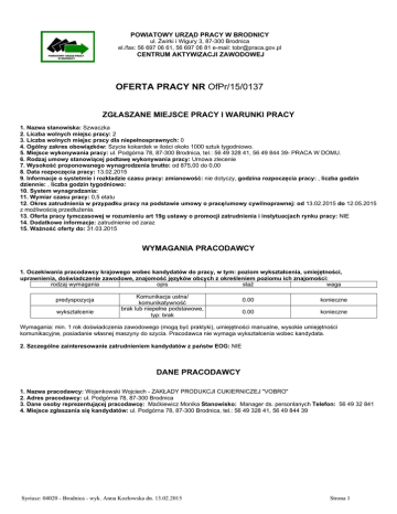 OFERTA PRACY NR OfPr/15/0137 - Powiatowy Urząd Pracy w