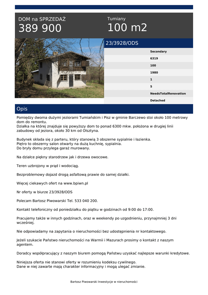 389 900 100 m2 - Bartosz Piwowarski Inwestycje w nieruchomości.