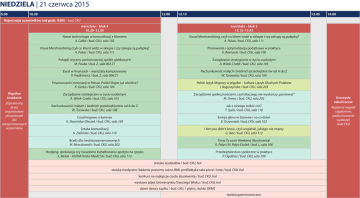 NIEDZIELA | 21 czerwca 2015 9.00 10.30 12.00 12.15 13.45 14.00 Rejestracja uczestników (od godz. 9:00) – bud. CKU Wspólne śniadanie Zapewniony przez organizatora poczęstunek dla zarejestrowanych uczestników warsztaty – blok 4 10.30–12.00 warsztaty – blok 5 12.15–13.45 Nowe technologie w komunikacji z klientem A. Całka / bud. CKU, sala 102 Visual Merchandising, czyli co klient widzi w sklepie i czy zakupy są pułapką? A. Pukas / bud. CKU, sala 111 Visual Merchandising czyli co klient widzi w sklepie i czy zakupy są pułapką? A. Pukas / bud. CKU, sala 111 Planowanie i optymalizacja podatkowa w praktyce K. Biernacki / bud. CKU, sala 108 Pułapki wyceny porównawczej spółek giełdowych M. Pauka / bud. Z, sala 002 Z1 Zarządzanie strategiczne w życiu osobistym A. Witek-Crabb / bud. CKU, sala 105 P. Prędkiewicz / bud. Z, sala 006 Z1 Rachunkowość małych i średnich przedsiębiorstw od A do Z W. Turowska / bud. CKU, sala 104 Finansowanie innowacji w Polsce. Polski Skype już wkrótce? K. Górka / bud. CKU, sala 104 Polski Język Migowy w pigułce – kultura i język Głuchych Polaków I. Boguszyńska / bud. CKU, sala 203 Zarządzanie strategiczne w życiu osobistym A. Witek-Crabb / bud. CKU, sala 105 Zarządzanie społecznościami, czyli dlaczego nie wystarczy „postować” M. Drews / bud. CKU, sala 202 Rachunkowość małych i średnich przedsiębiorstw od A do Z W. Turowska / bud. CKU, sala 108 Jak z niczego zrobić coś? T. Sysło / bud. CKU, sala 110 Coachingowo o karierze K. Sławińska-Oleszek / bud. CKU, sala 109 Emisja głosu w biznesie i na co dzień E. Grzywniak / bud. CKU, sala 102 Sztuka komunikacji A. Zielińska / bud. CKU, sala 110 I bet you didn’t know, czyli angielski, jakiego nie znamy G. Bieć / bud. CKU, sala 112 Brydż dla średniozaawansowanych M. Mroczkowski / bud. CKU, sala 202 Teraz Ty oceń Weekend Absolwenta! K. Pałys i M. Pałys-Dudek / bud. L, sala 106 Hedging: spekulacja czy świadome kształtowanie apetytu na ryzyko Ł. Bielak – KGHM Polska Miedź SA / bud. CKU, sala 112 Przedsiębiorstwo społeczne w praktyce P. Ograbisz / bud. CKU, sala 109 stoiska wydziałów / bud. CKU, hol bud. CKU, hol konkurs na najlepsze ciasto absolwenta / bud. CKU, hol wystawa zdjęć Uniwersytetu Trzeciego Wieku / bud. CKU, hol dzień dawcy szpiku / bud. CKU, 1 piętro, stoisko DKMS stoiska gastronomiczne Uroczyste zakończenie Rozdanie nagród i dyplomów, podsumowanie wydarzeń Aula CKU
